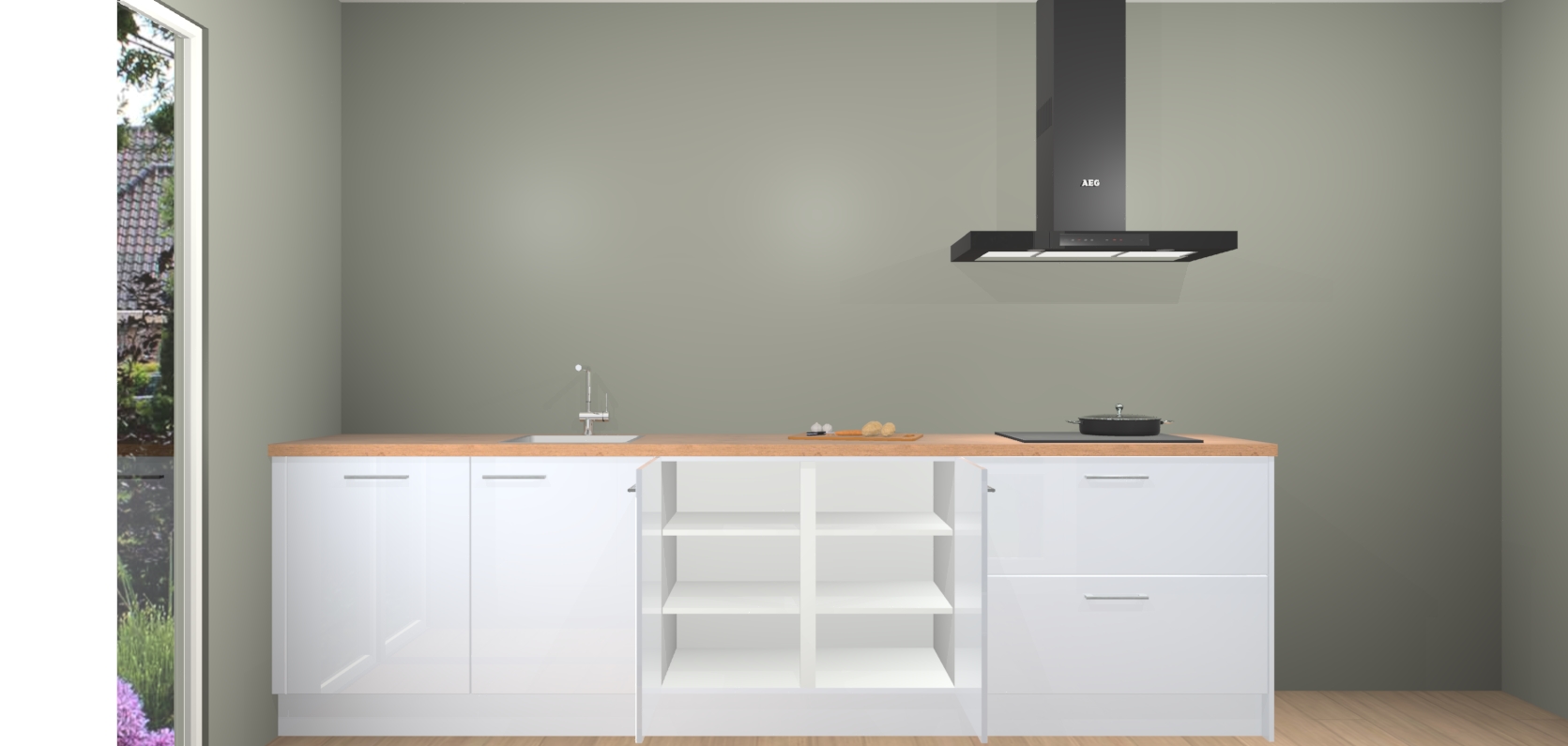 De softclose deuren openen en sluiten is ook heel eenvoudig - geniet van een moeiteloze keukenervaring, zelfs als er kinderen rondlopen. Voor extra gemak bij het plaatsen van uw bestelling bieden we ook een upgrade naar een kookplaat met geïntegreerde afzuiging.
