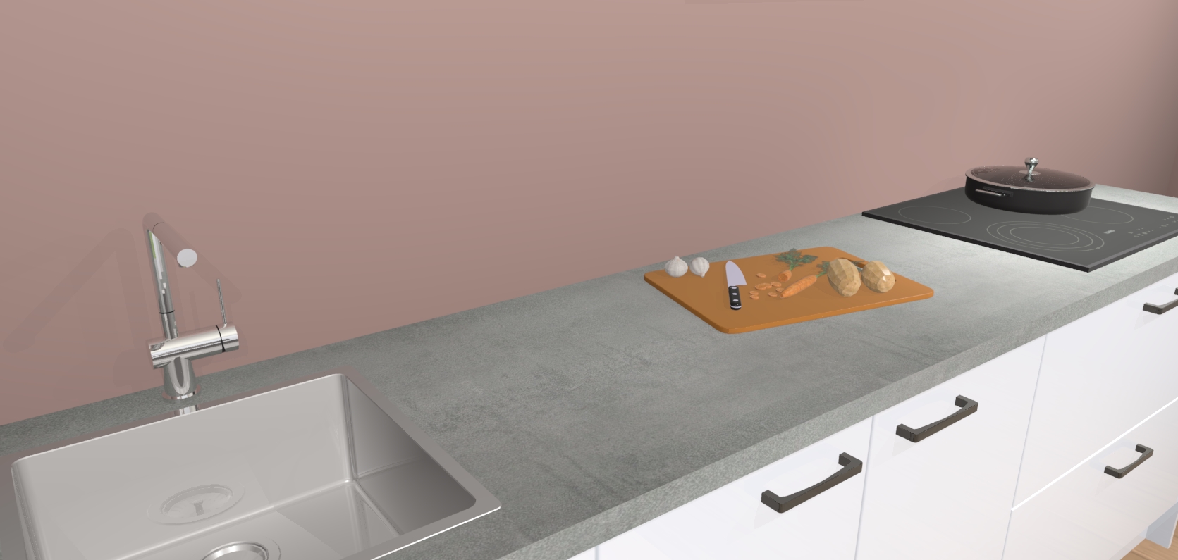 Inclusief plinten, stelpoten en werkblad