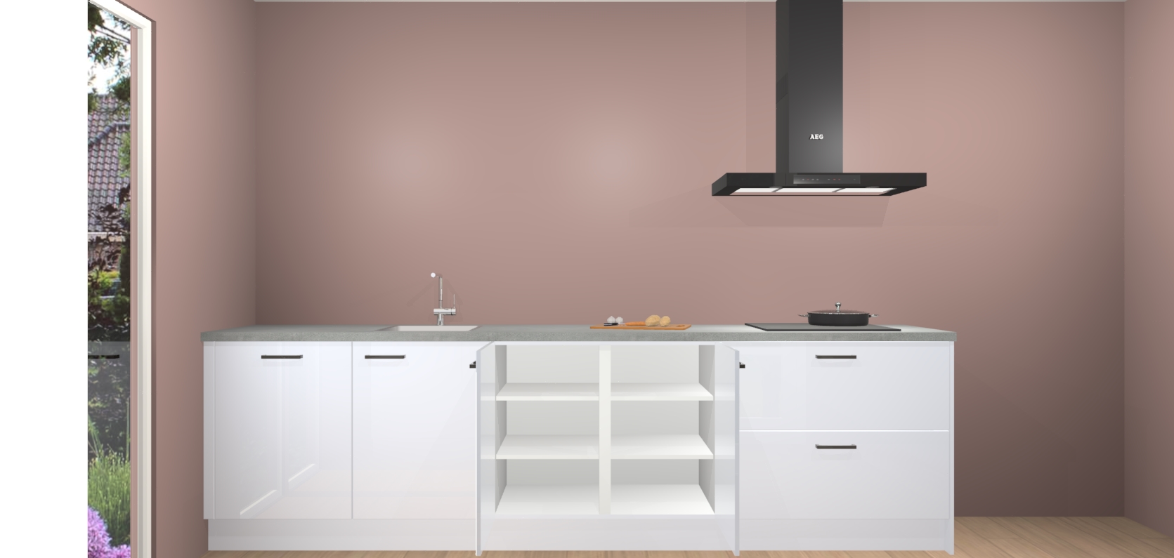 De softclose deuren openen en sluiten is ook heel eenvoudig - geniet van een moeiteloze keukenervaring, zelfs als er kinderen rondlopen. Voor extra gemak bij het plaatsen van uw bestelling bieden we ook een upgrade naar een kookplaat met geïntegreerde afzuiging.