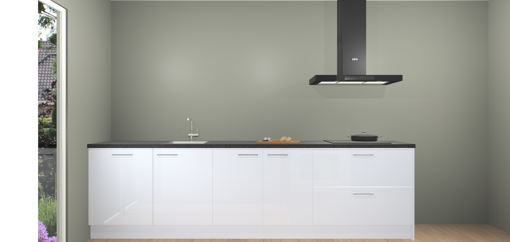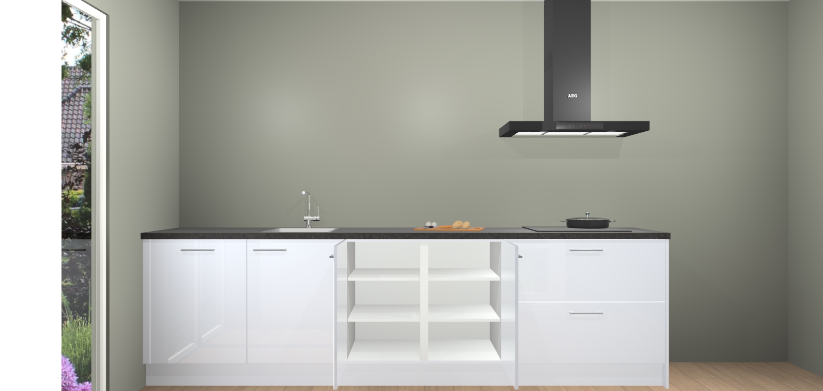 De softclose deuren openen en sluiten is ook heel eenvoudig - geniet van een moeiteloze keukenervaring, zelfs als er kinderen rondlopen. Voor extra gemak bij het plaatsen van uw bestelling bieden we ook een upgrade naar een kookplaat met geïntegreerde afzuiging.