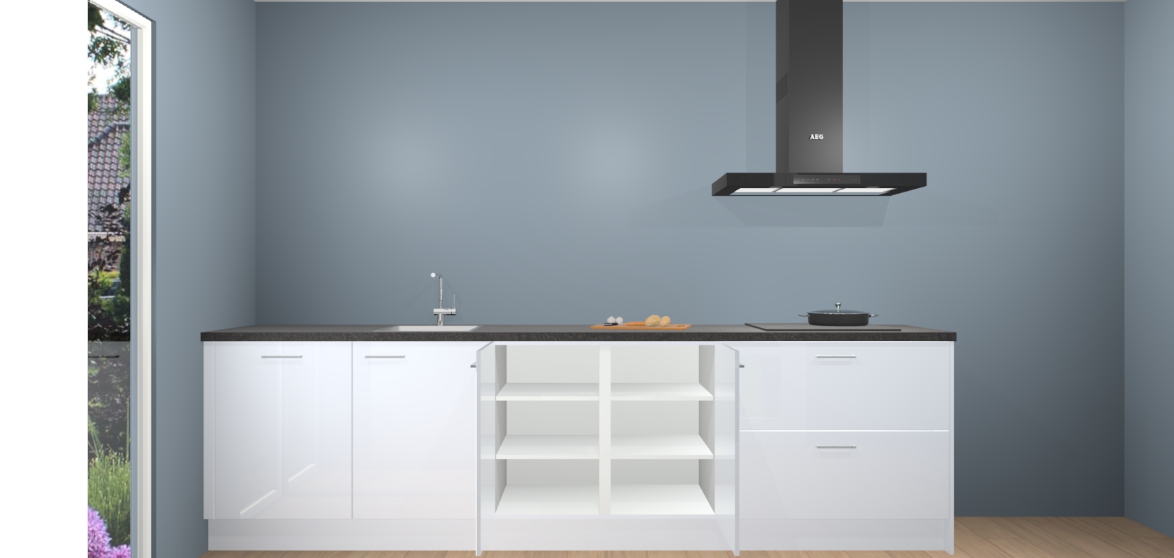 De softclose deuren openen en sluiten is ook heel eenvoudig - geniet van een moeiteloze keukenervaring, zelfs als er kinderen rondlopen. Voor extra gemak bij het plaatsen van uw bestelling bieden we ook een upgrade naar een kookplaat met geïntegreerde afzuiging.