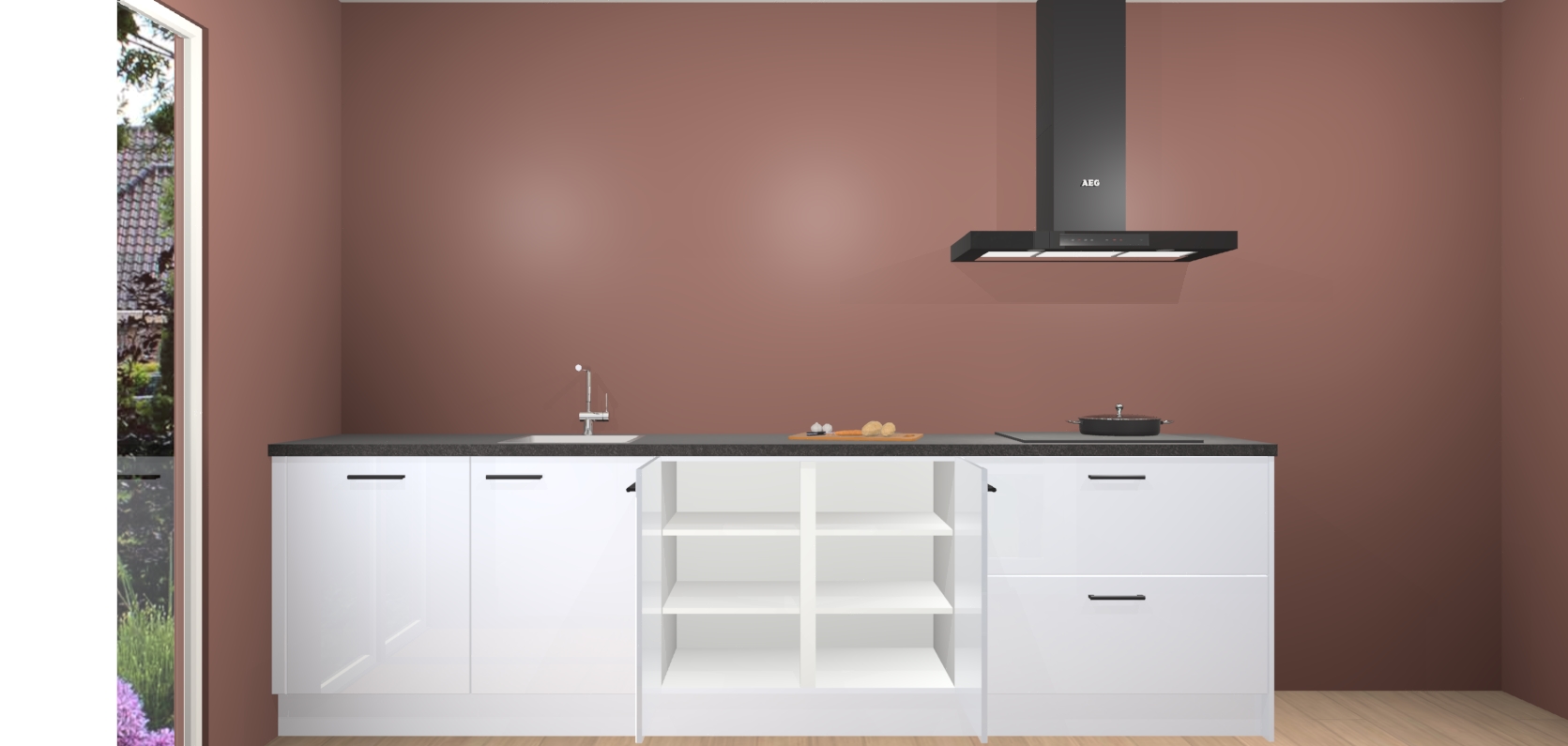 De softclose deuren openen en sluiten is ook heel eenvoudig - geniet van een moeiteloze keukenervaring, zelfs als er kinderen rondlopen. Voor extra gemak bij het plaatsen van uw bestelling bieden we ook een upgrade naar een kookplaat met geïntegreerde afzuiging.
