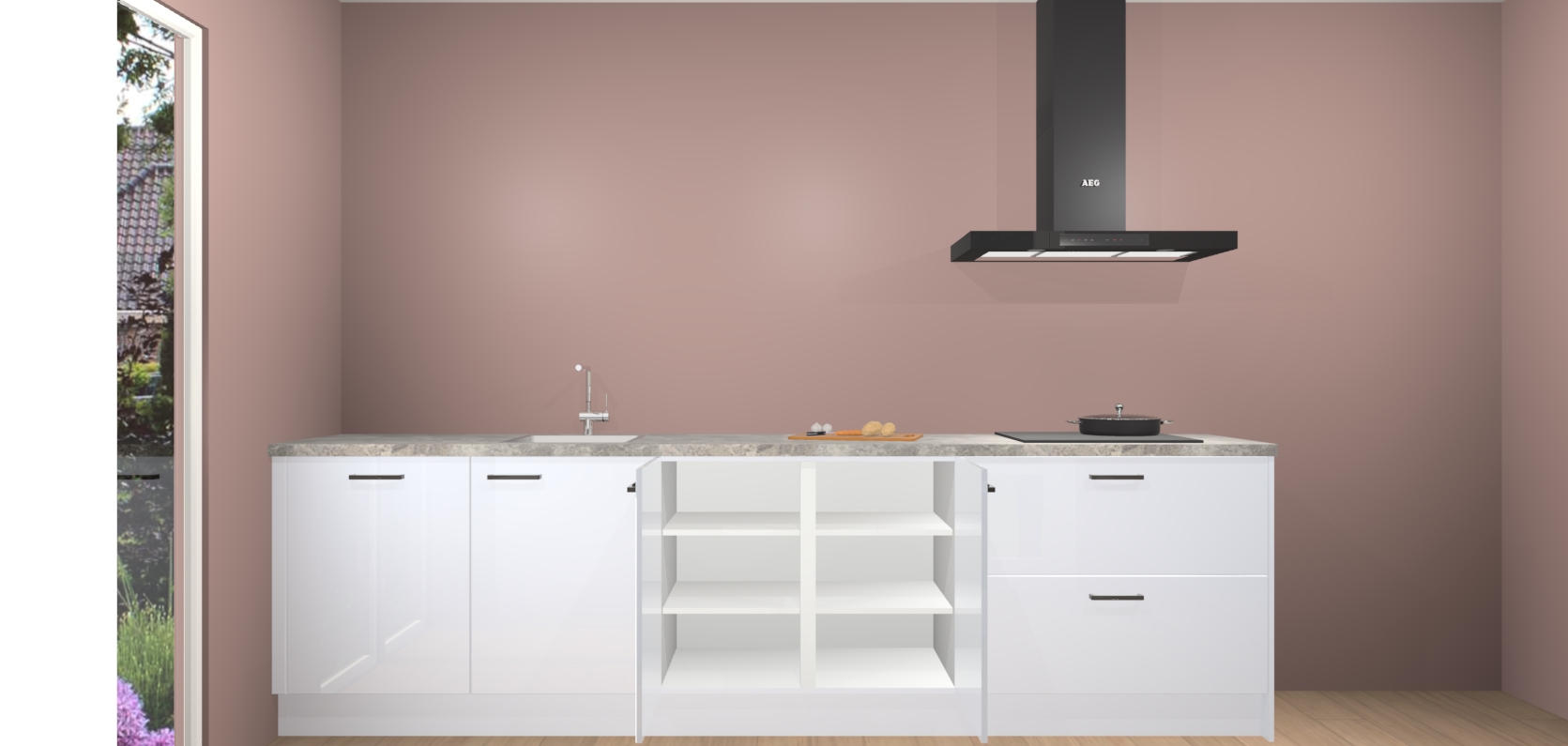 De softclose deuren openen en sluiten is ook heel eenvoudig - geniet van een moeiteloze keukenervaring, zelfs als er kinderen rondlopen. Voor extra gemak bij het plaatsen van uw bestelling bieden we ook een upgrade naar een kookplaat met geïntegreerde afzuiging.