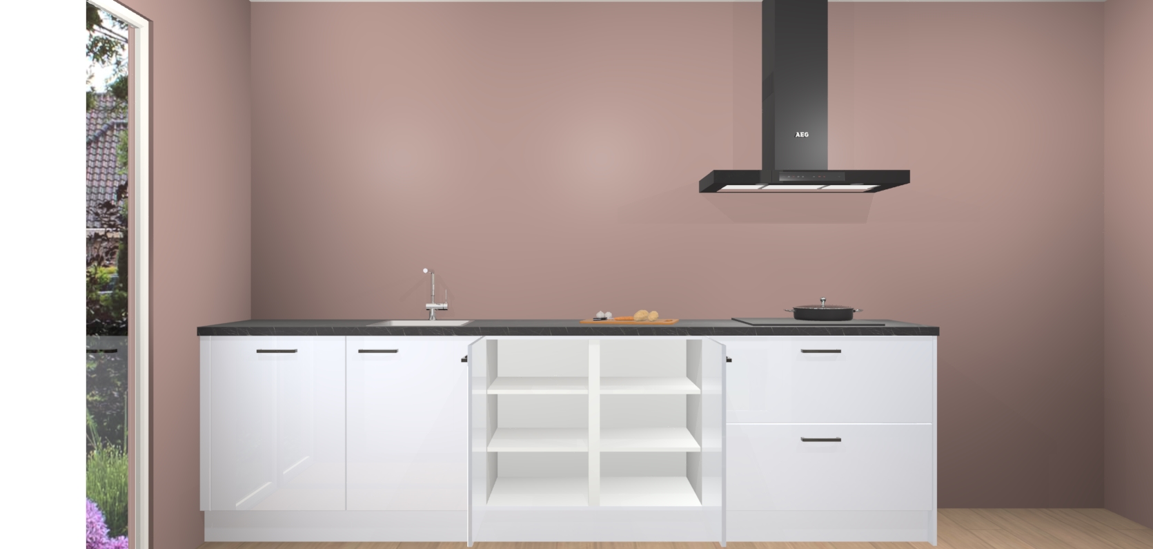 De softclose deuren openen en sluiten is ook heel eenvoudig - geniet van een moeiteloze keukenervaring, zelfs als er kinderen rondlopen. Voor extra gemak bij het plaatsen van uw bestelling bieden we ook een upgrade naar een kookplaat met geïntegreerde afzuiging.