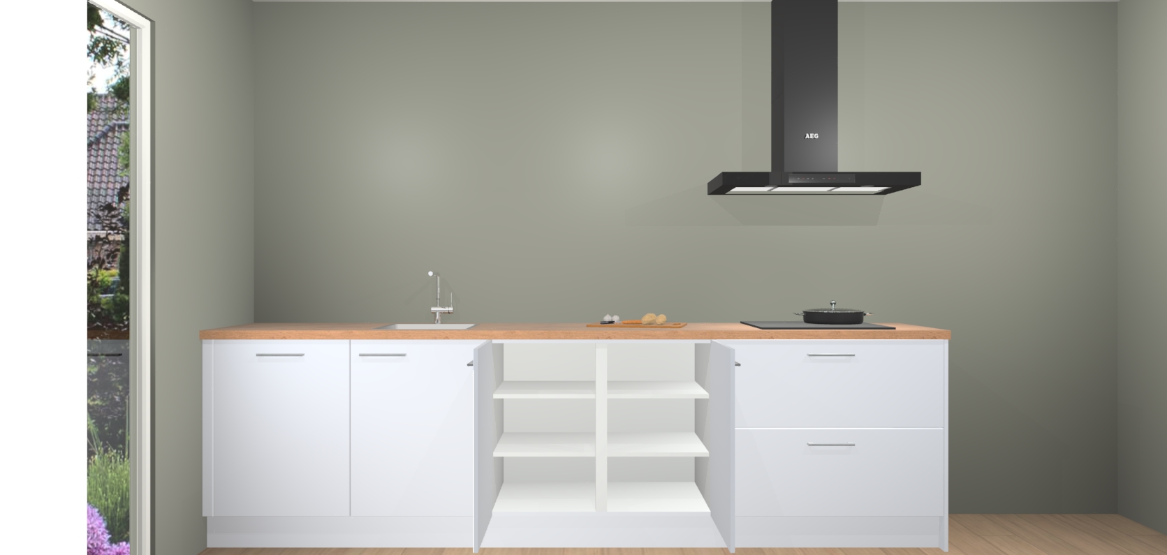 De softclose deuren openen en sluiten is ook heel eenvoudig - geniet van een moeiteloze keukenervaring, zelfs als er kinderen rondlopen. Voor extra gemak bij het plaatsen van uw bestelling bieden we ook een upgrade naar een kookplaat met geïntegreerde afzuiging.