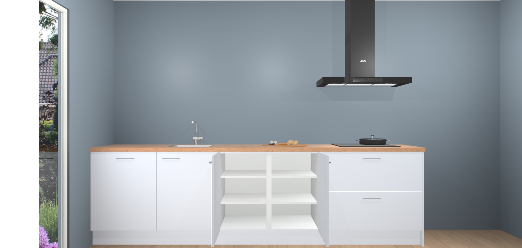 De softclose deuren openen en sluiten is ook heel eenvoudig - geniet van een moeiteloze keukenervaring, zelfs als er kinderen rondlopen. Voor extra gemak bij het plaatsen van uw bestelling bieden we ook een upgrade naar een kookplaat met geïntegreerde afzuiging.