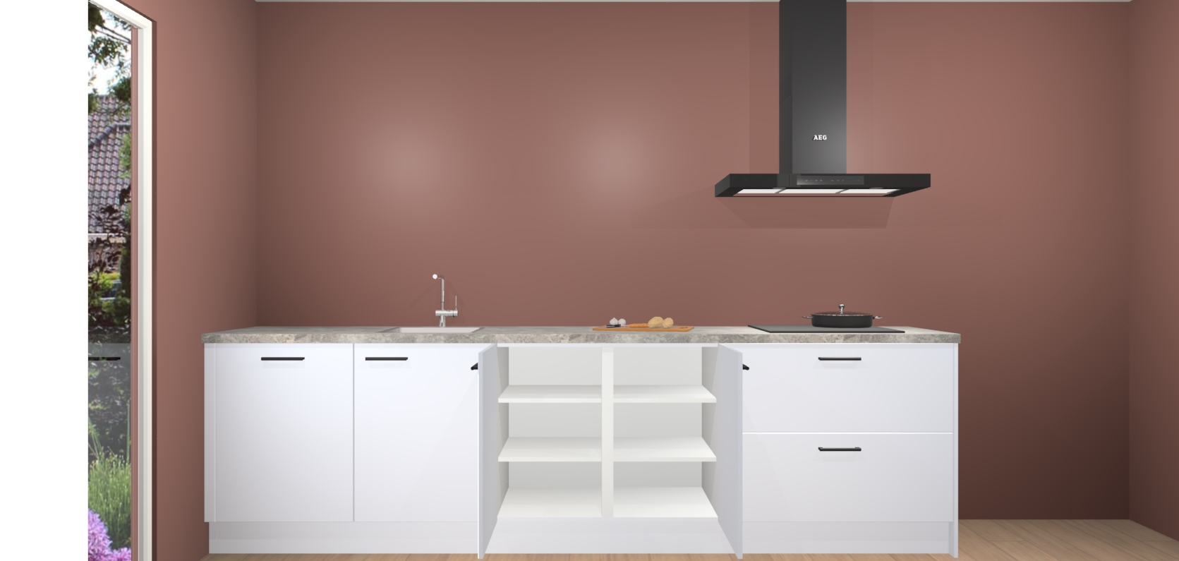De softclose deuren openen en sluiten is ook heel eenvoudig - geniet van een moeiteloze keukenervaring, zelfs als er kinderen rondlopen. Voor extra gemak bij het plaatsen van uw bestelling bieden we ook een upgrade naar een kookplaat met geïntegreerde afzuiging.