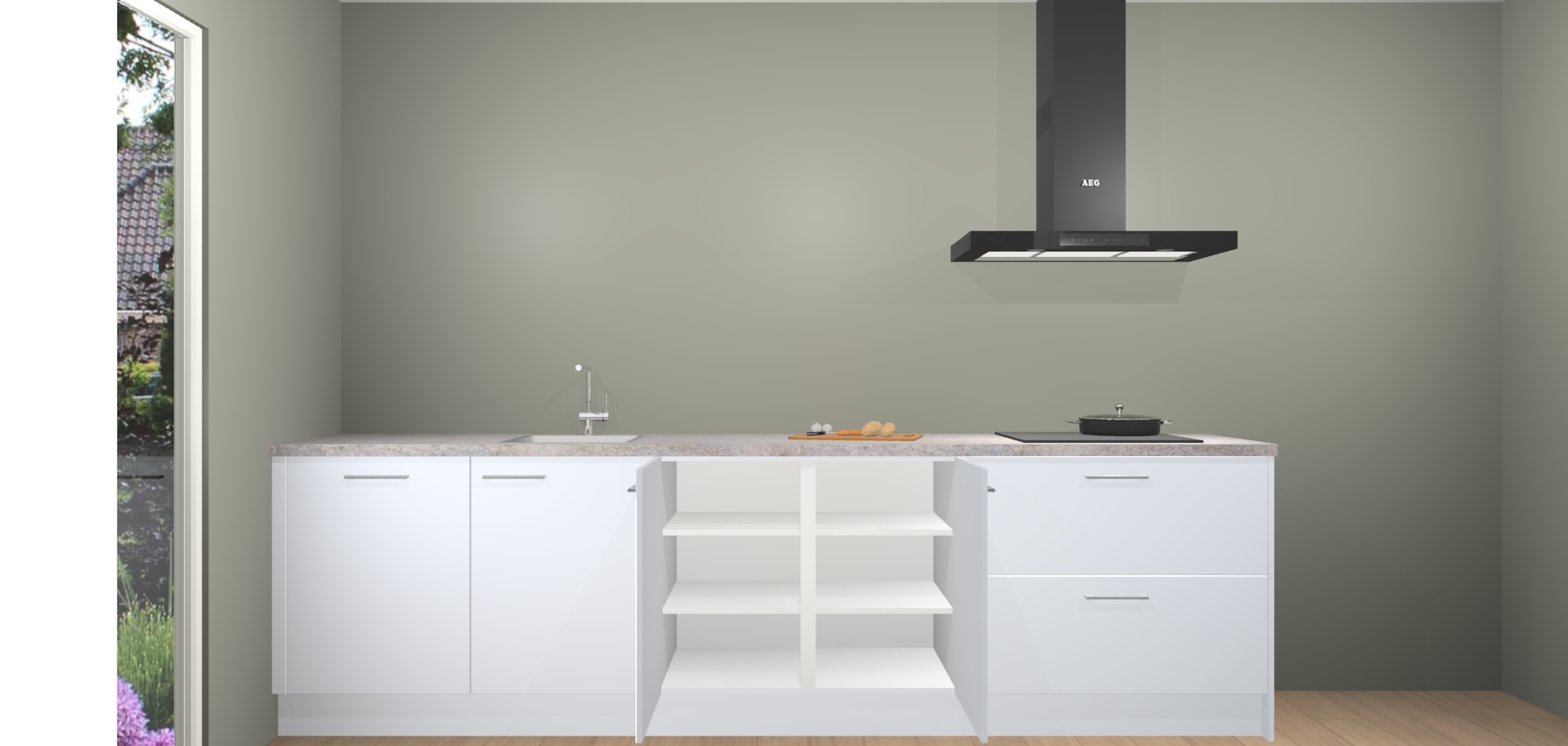 De softclose deuren openen en sluiten is ook heel eenvoudig - geniet van een moeiteloze keukenervaring, zelfs als er kinderen rondlopen. Voor extra gemak bij het plaatsen van uw bestelling bieden we ook een upgrade naar een kookplaat met geïntegreerde afzuiging.