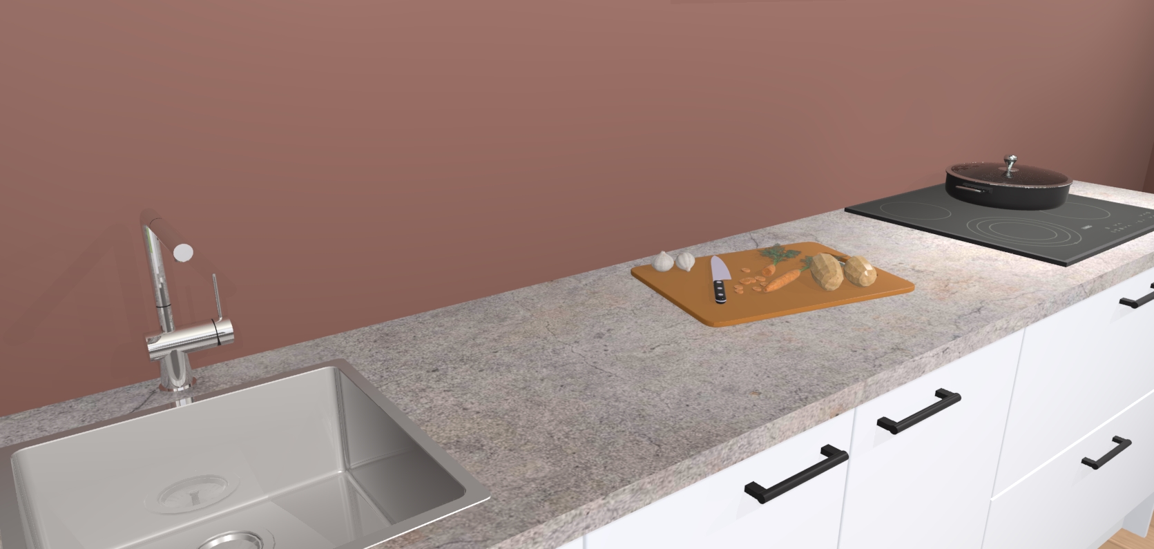- Uitsparing van kookplaat, spoelbak en kraan dient u zelf te verzorgen.