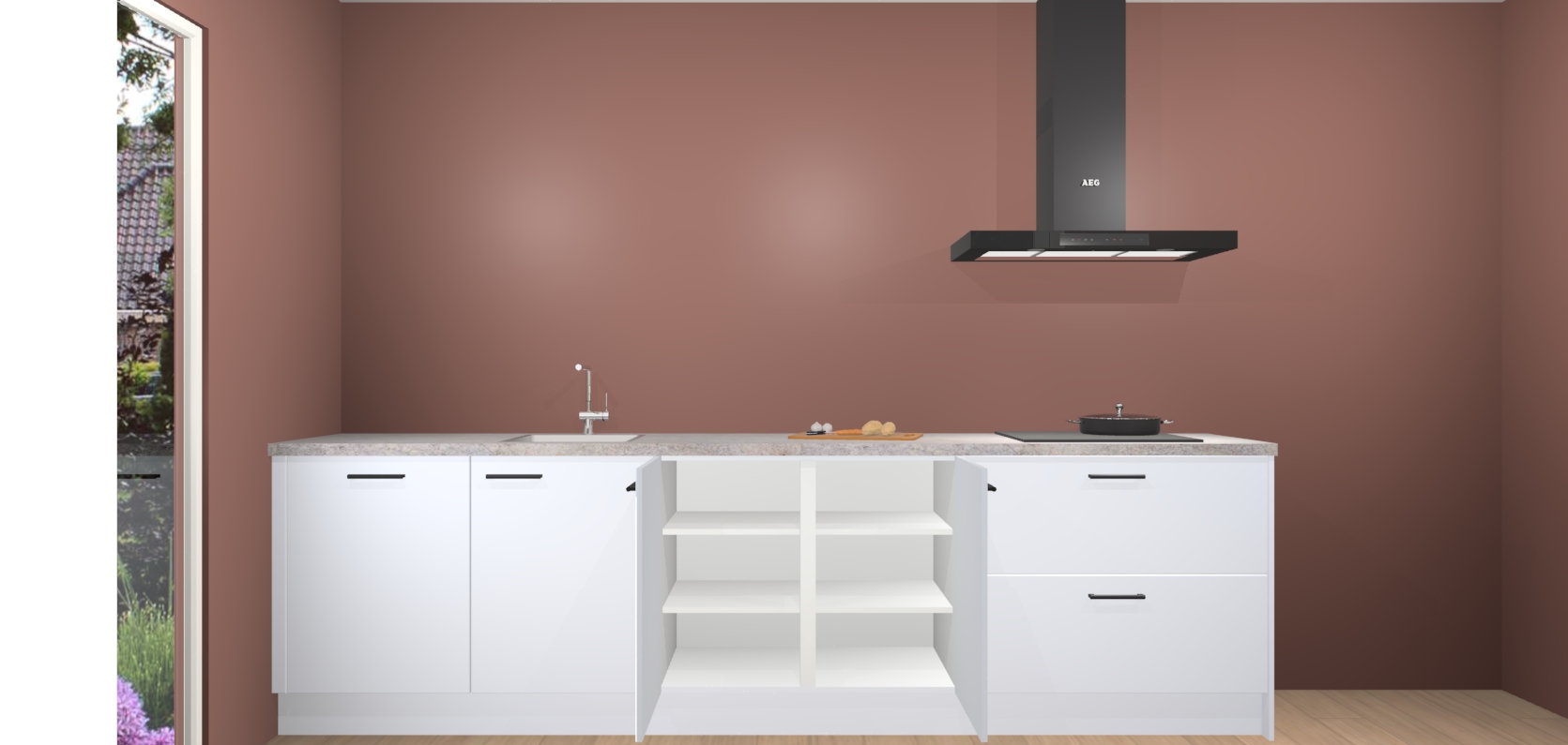 De softclose deuren openen en sluiten is ook heel eenvoudig - geniet van een moeiteloze keukenervaring, zelfs als er kinderen rondlopen. Voor extra gemak bij het plaatsen van uw bestelling bieden we ook een upgrade naar een kookplaat met geïntegreerde afzuiging.