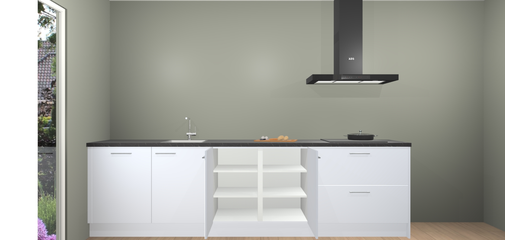 De softclose deuren openen en sluiten is ook heel eenvoudig - geniet van een moeiteloze keukenervaring, zelfs als er kinderen rondlopen. Voor extra gemak bij het plaatsen van uw bestelling bieden we ook een upgrade naar een kookplaat met geïntegreerde afzuiging.