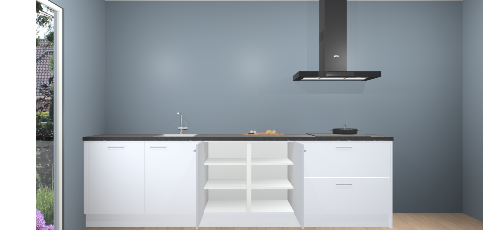 De softclose deuren openen en sluiten is ook heel eenvoudig - geniet van een moeiteloze keukenervaring, zelfs als er kinderen rondlopen. Voor extra gemak bij het plaatsen van uw bestelling bieden we ook een upgrade naar een kookplaat met geïntegreerde afzuiging.