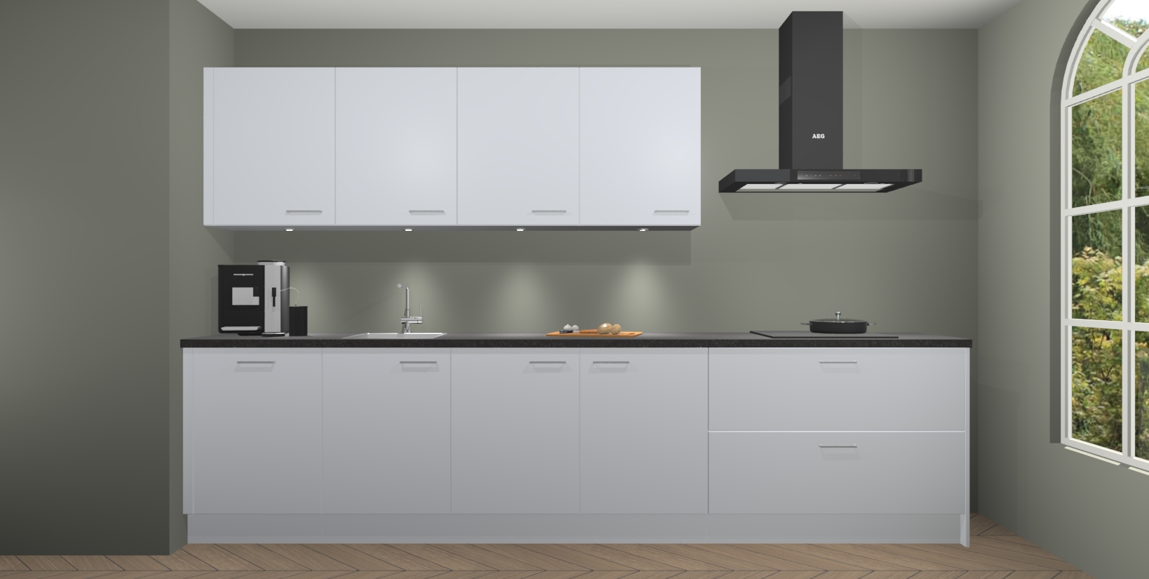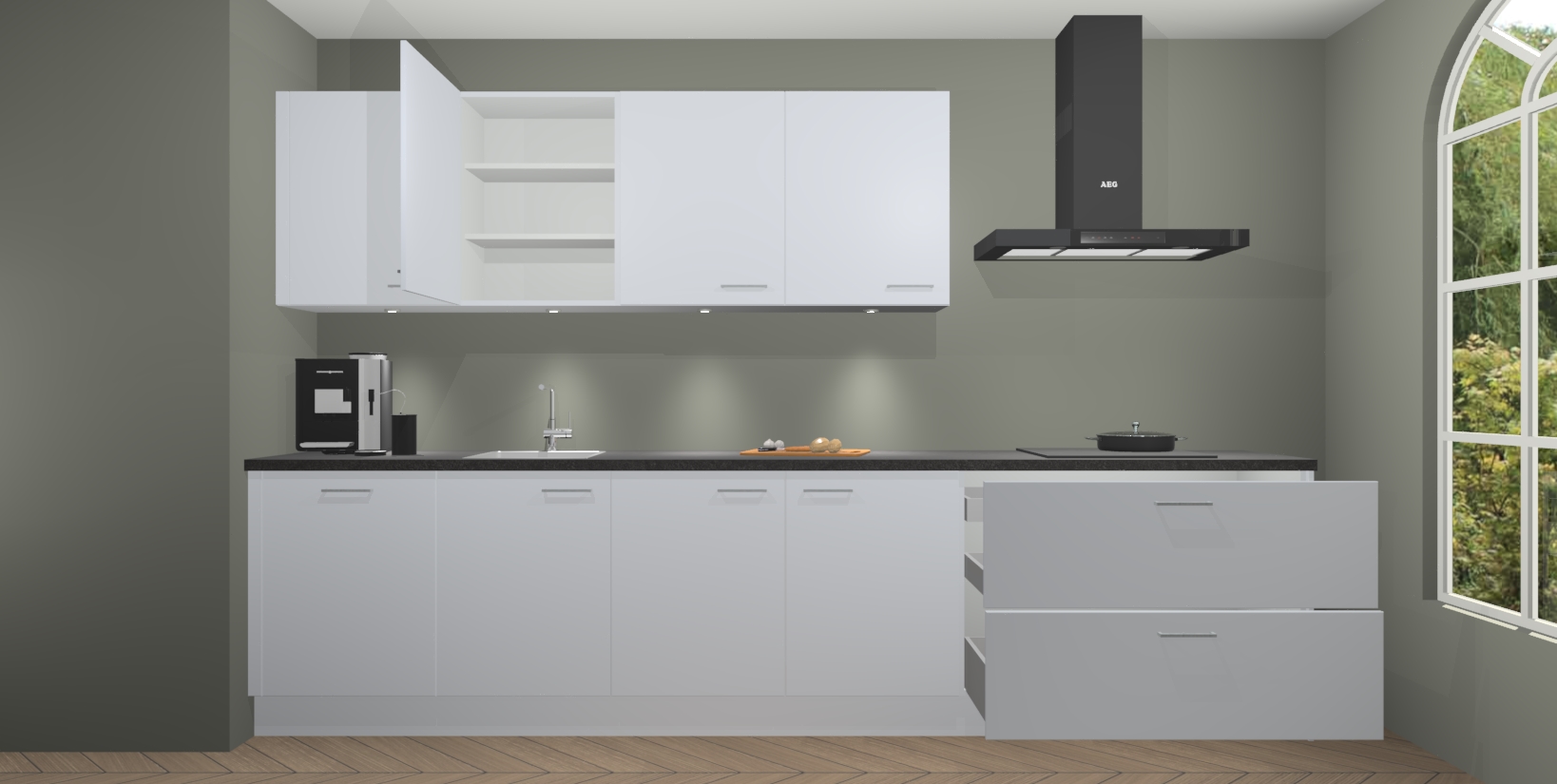 De softclose deuren openen en sluiten is ook heel eenvoudig - geniet van een moeiteloze keukenervaring, zelfs als er kinderen rondlopen. Voor extra gemak bij het plaatsen van uw bestelling bieden we ook een upgrade naar een kookplaat met geïntegreerde afzuiging.