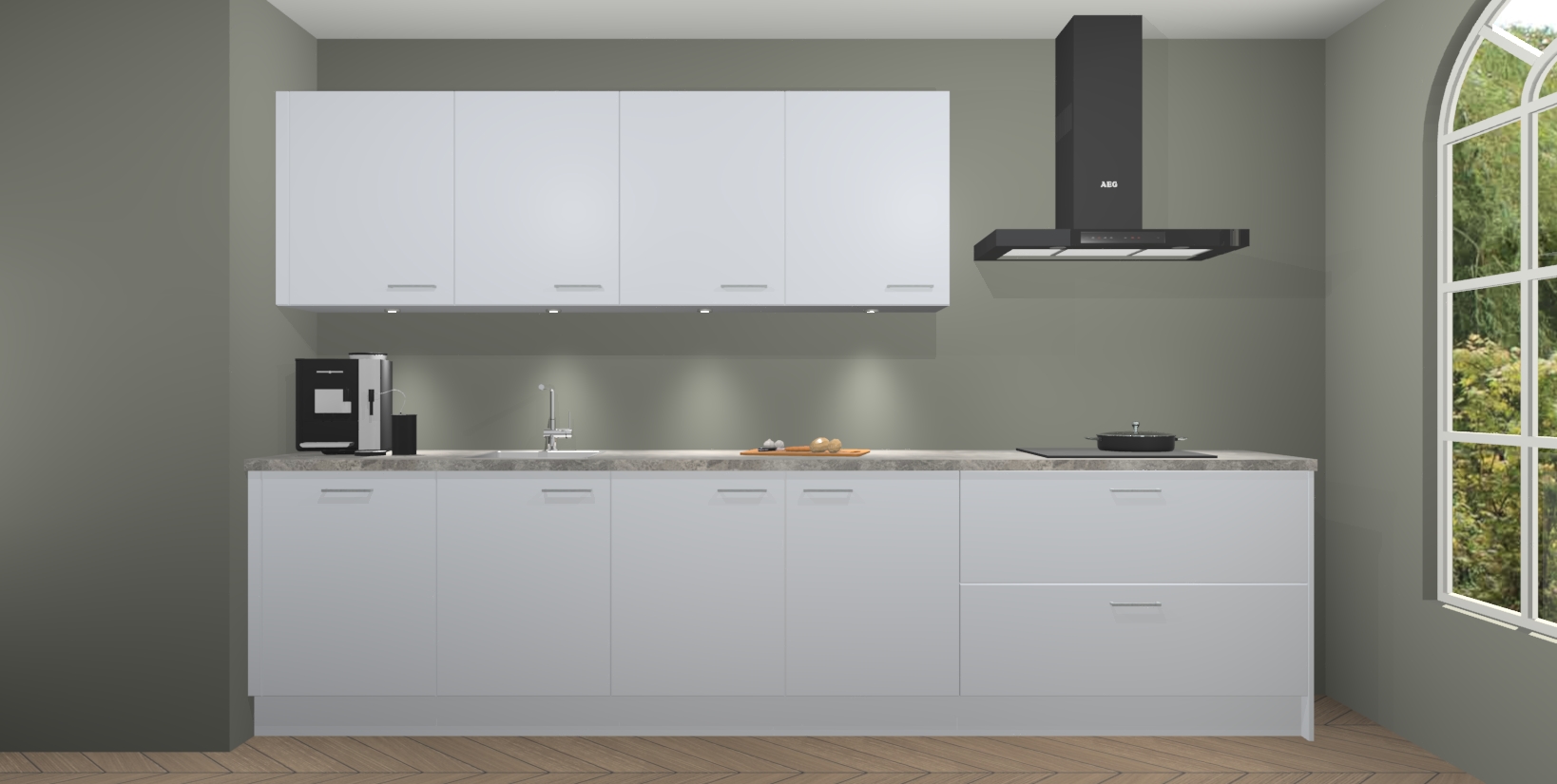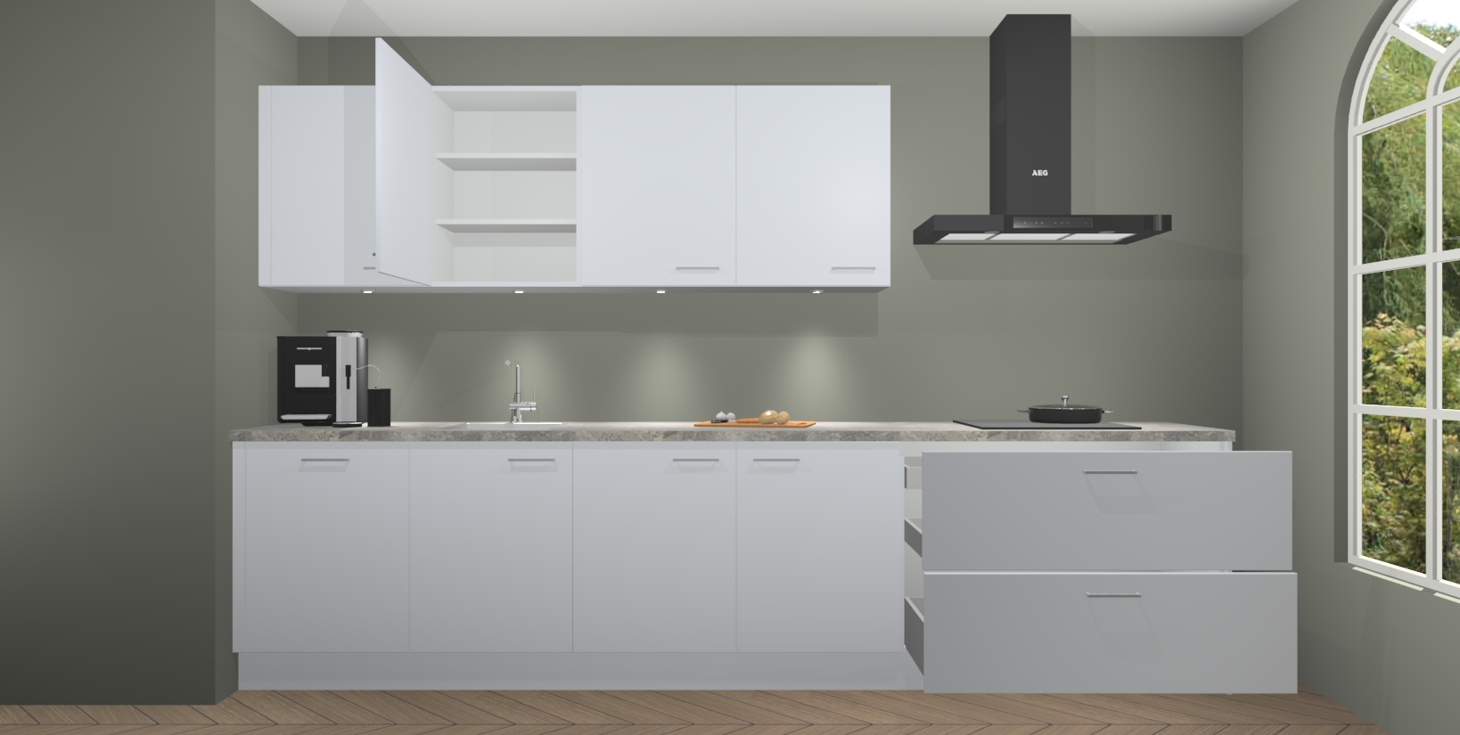 De softclose deuren openen en sluiten is ook heel eenvoudig - geniet van een moeiteloze keukenervaring, zelfs als er kinderen rondlopen. Voor extra gemak bij het plaatsen van uw bestelling bieden we ook een upgrade naar een kookplaat met geïntegreerde afzuiging.