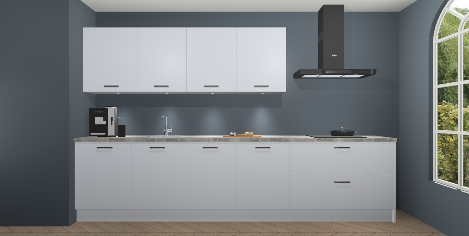 De softclose deuren openen en sluiten is ook heel eenvoudig - geniet van een moeiteloze keukenervaring, zelfs als er kinderen rondlopen. Voor extra gemak bij het plaatsen van uw bestelling bieden we ook een upgrade naar een kookplaat met geïntegreerde afzuiging.