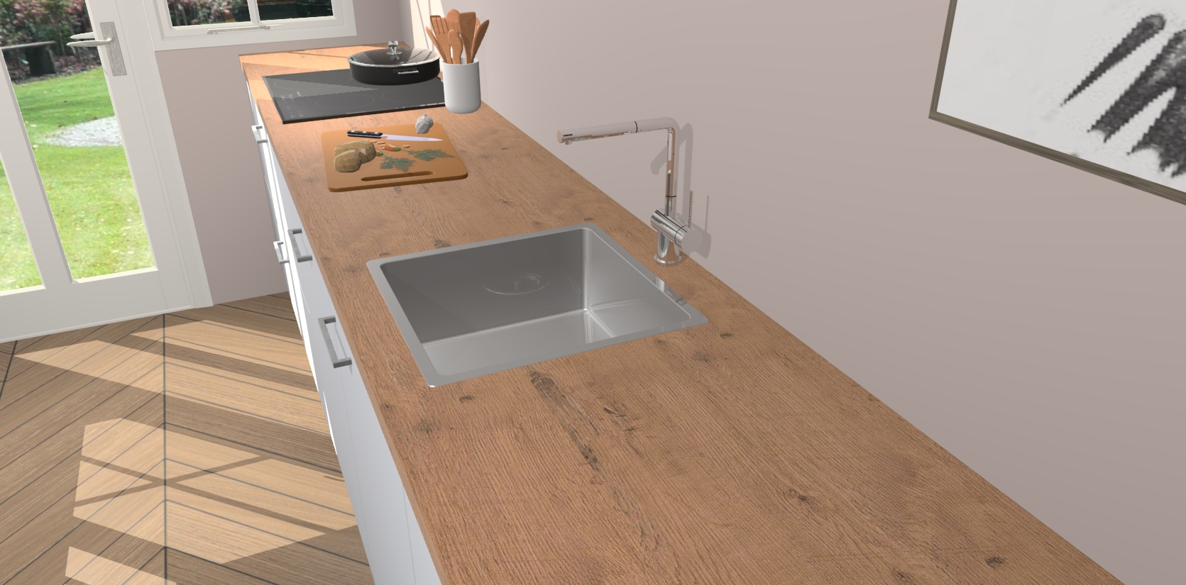- Bij een hoekwerkblad zijn de hoeken in gevreesd en op maat gemaakt