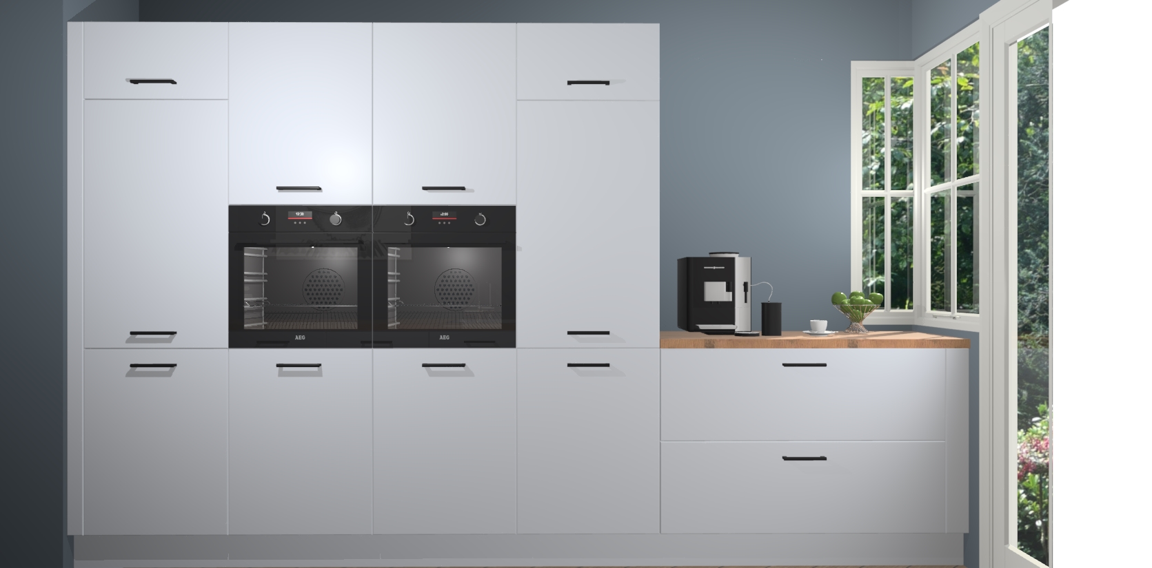 Een stijlvolle en praktische keuken als deze mag gezien worden. Dankzij de prachtige sneeuwwitte matte afwerking wordt de keuken gemakkelijk het middelpunt van uw huis - hij ziet er geweldig uit onder allerlei lichtomstandigheden, van dag tot nacht!