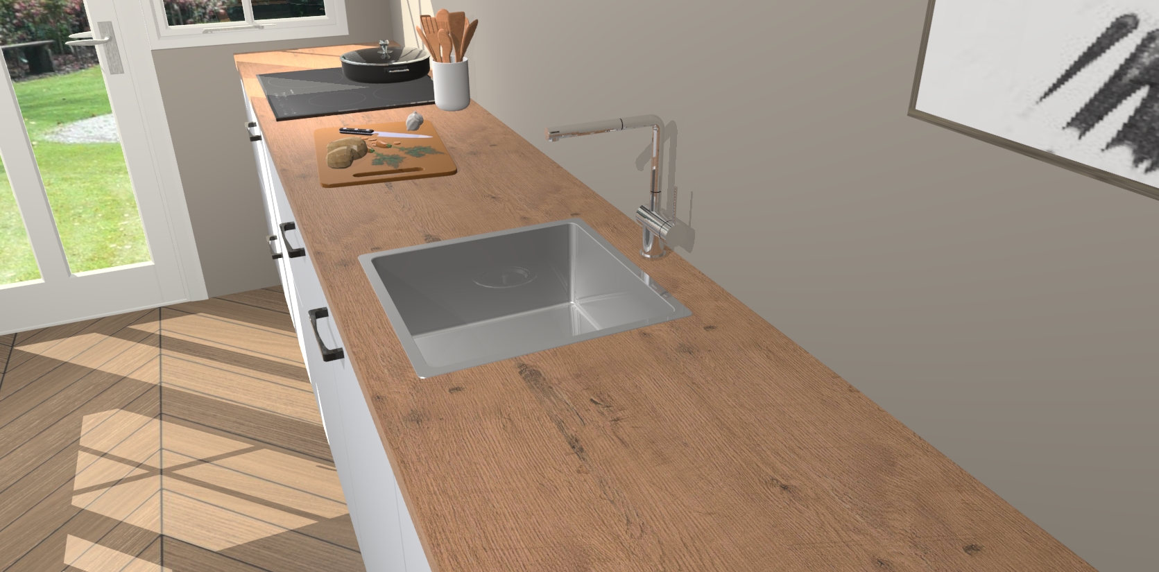 • Bij een hoekwerkblad zijn de hoeken in gevreesd en op maat gemaakt
