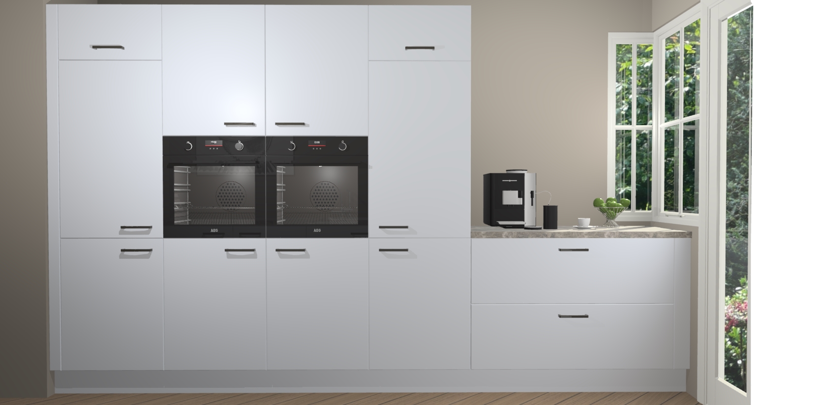Een stijlvolle en praktische keuken als deze mag gezien worden. Dankzij de prachtige sneeuwwitte matte afwerking wordt de keuken gemakkelijk het middelpunt van uw huis - hij ziet er geweldig uit onder allerlei lichtomstandigheden, van dag tot nacht!