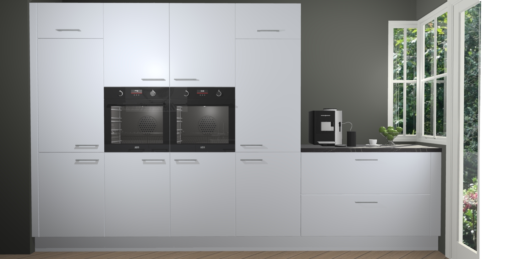 Een stijlvolle en praktische keuken als deze mag gezien worden. Dankzij de prachtige sneeuwwitte matte afwerking wordt de keuken gemakkelijk het middelpunt van uw huis - hij ziet er geweldig uit onder allerlei lichtomstandigheden, van dag tot nacht!