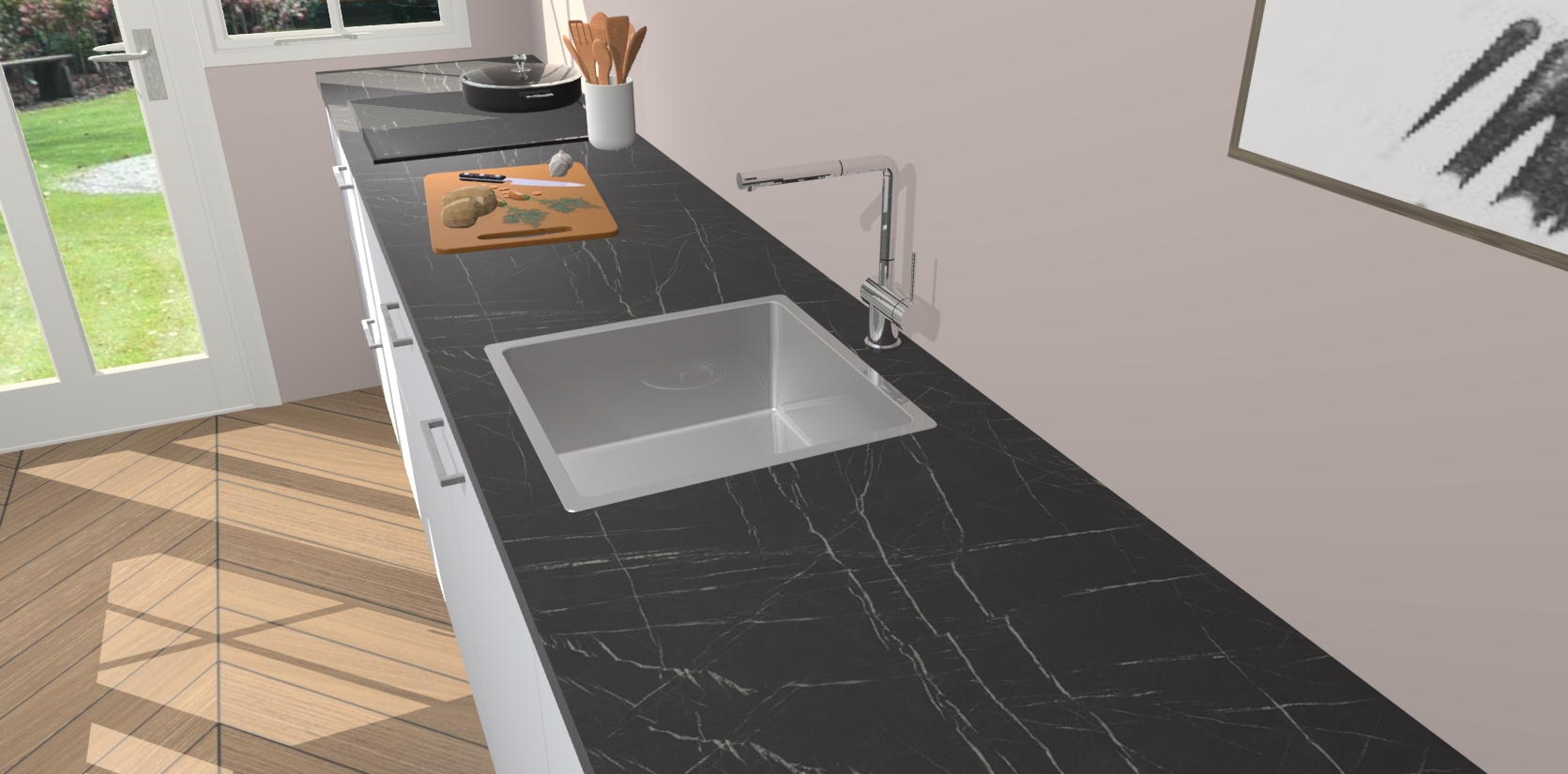 - Bij een hoekwerkblad zijn de hoeken in gevreesd en op maat gemaakt