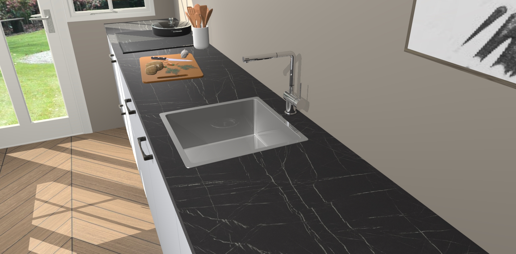 • Bij een hoekwerkblad zijn de hoeken in gevreesd en op maat gemaakt