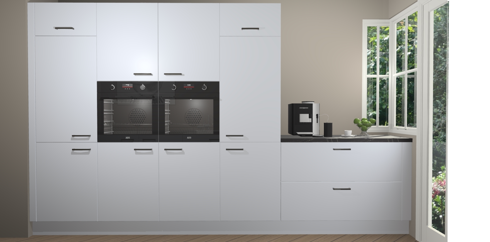 Een stijlvolle en praktische keuken als deze mag gezien worden. Dankzij de prachtige sneeuwwitte matte afwerking wordt de keuken gemakkelijk het middelpunt van uw huis - hij ziet er geweldig uit onder allerlei lichtomstandigheden, van dag tot nacht!