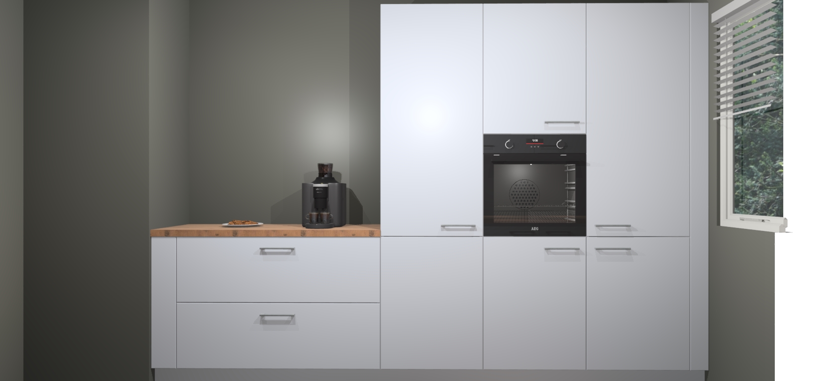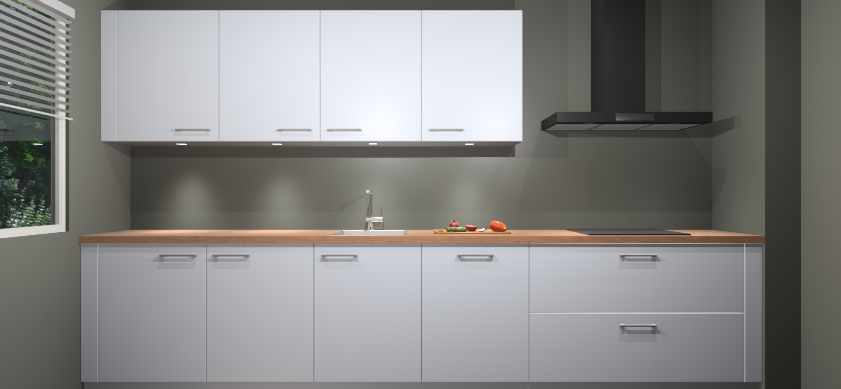 Een stijlvolle en praktische keuken als deze mag gezien worden. Dankzij de prachtige Sneeuwwitte matte afwerking wordt de keuken gemakkelijk het middelpunt van uw huis - hij ziet er geweldig uit onder allerlei lichtomstandigheden, van dag tot nacht!