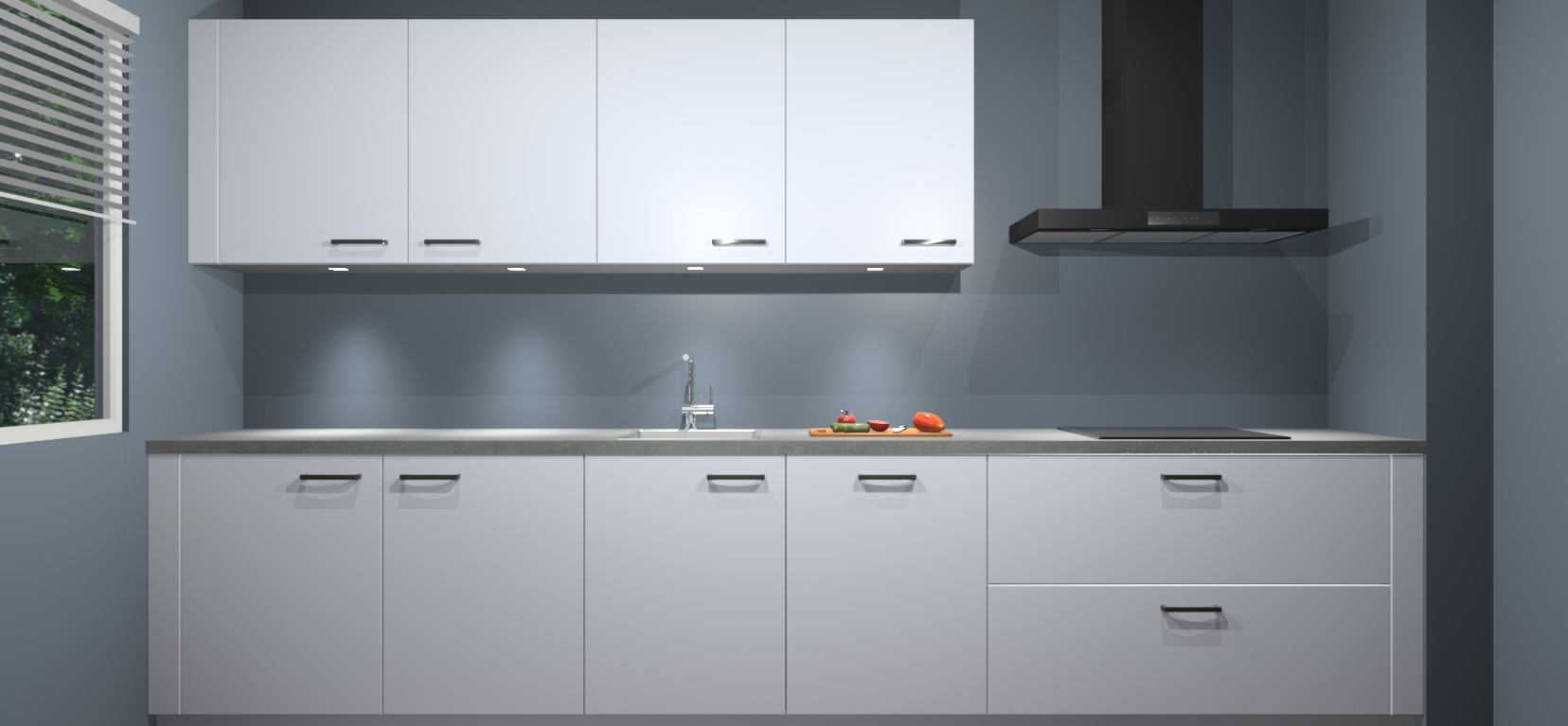 Een stijlvolle en praktische keuken als deze mag gezien worden. Dankzij de prachtige Sneeuwwitte matte afwerking wordt de keuken gemakkelijk het middelpunt van uw huis - hij ziet er geweldig uit onder allerlei lichtomstandigheden, van dag tot nacht!