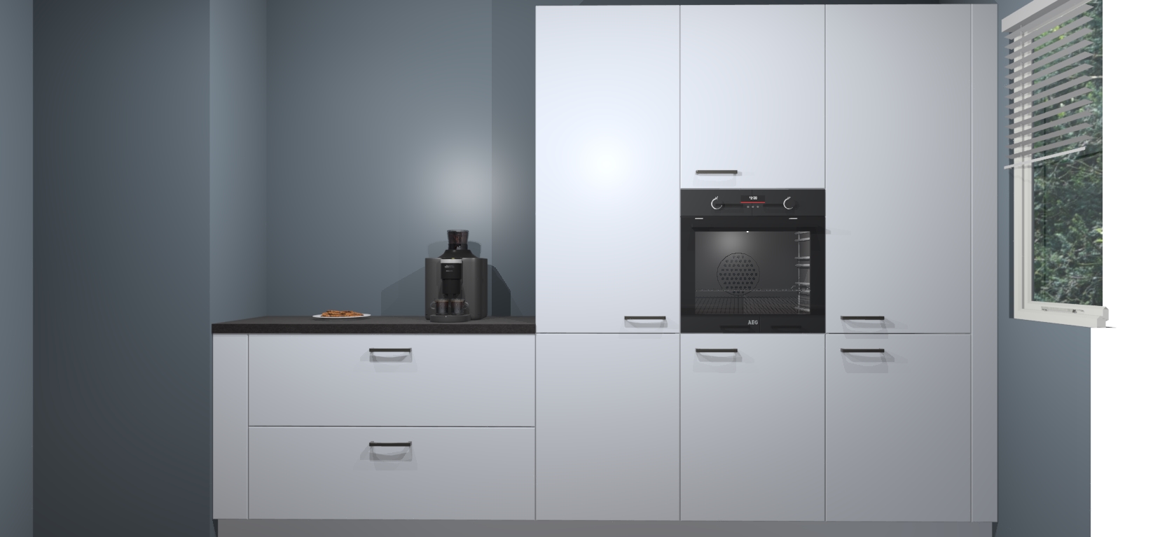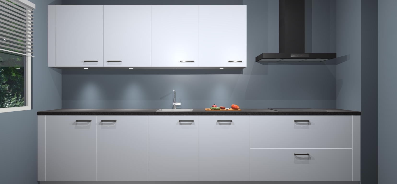Een stijlvolle en praktische keuken als deze mag gezien worden. Dankzij de prachtige Sneeuwwitte matte afwerking wordt de keuken gemakkelijk het middelpunt van uw huis - hij ziet er geweldig uit onder allerlei lichtomstandigheden, van dag tot nacht!