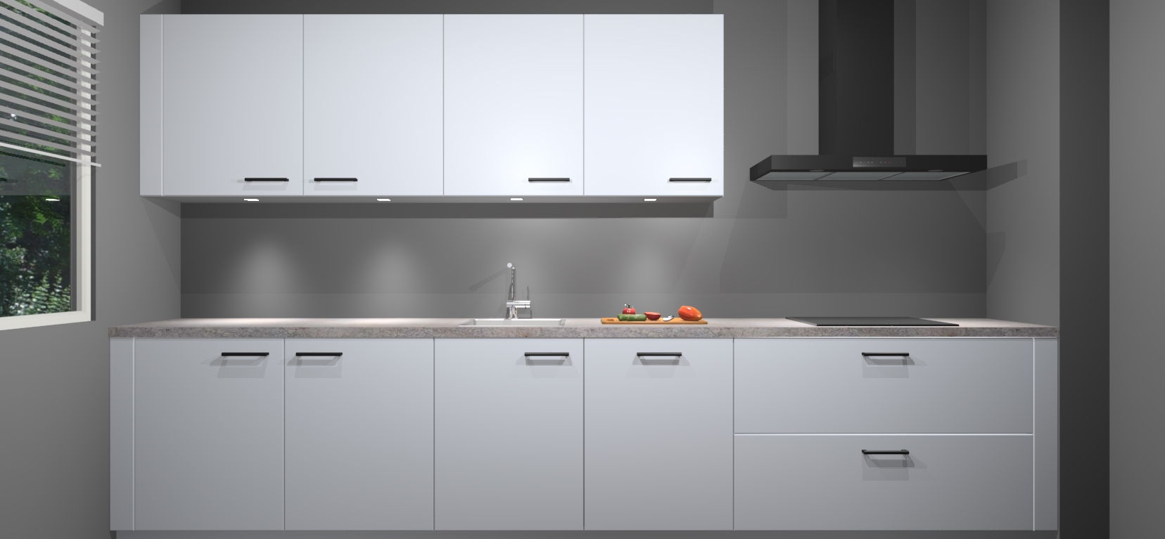Een stijlvolle en praktische keuken als deze mag gezien worden. Dankzij de prachtige Sneeuwwitte matte afwerking wordt de keuken gemakkelijk het middelpunt van uw huis - hij ziet er geweldig uit onder allerlei lichtomstandigheden, van dag tot nacht!
