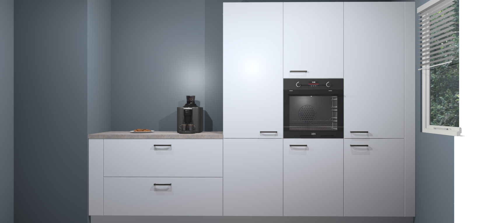 Een stijlvolle en praktische keuken als deze mag gezien worden. Dankzij de prachtige Sneeuwwitte matte afwerking wordt de keuken gemakkelijk het middelpunt van uw huis - hij ziet er geweldig uit onder allerlei lichtomstandigheden, van dag tot nacht!