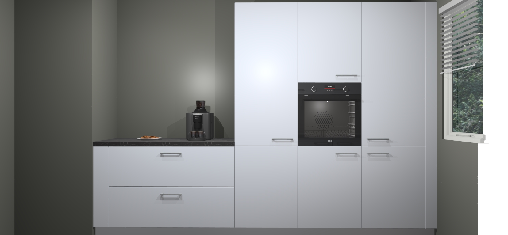 Een stijlvolle en praktische keuken als deze mag gezien worden. Dankzij de prachtige Sneeuwwitte matte afwerking wordt de keuken gemakkelijk het middelpunt van uw huis - hij ziet er geweldig uit onder allerlei lichtomstandigheden, van dag tot nacht!