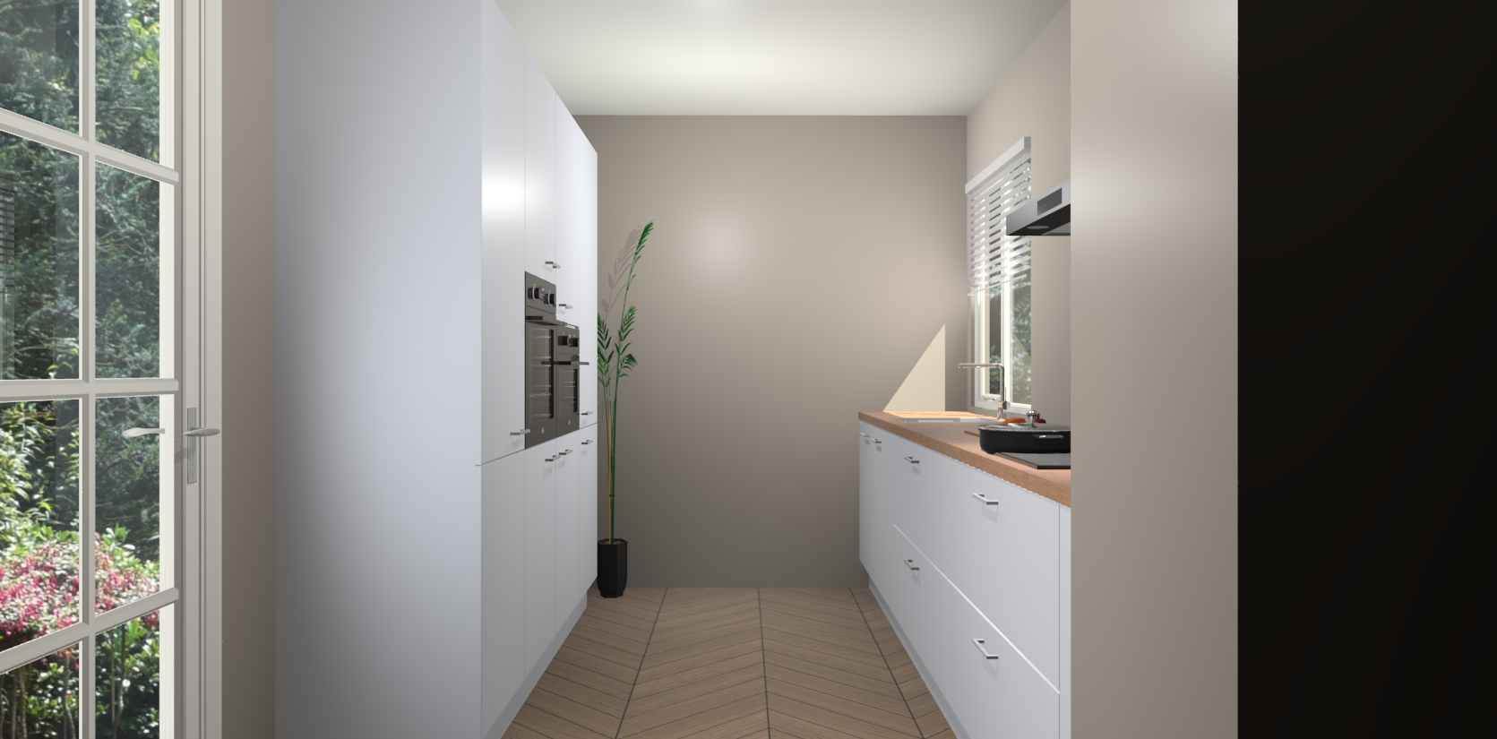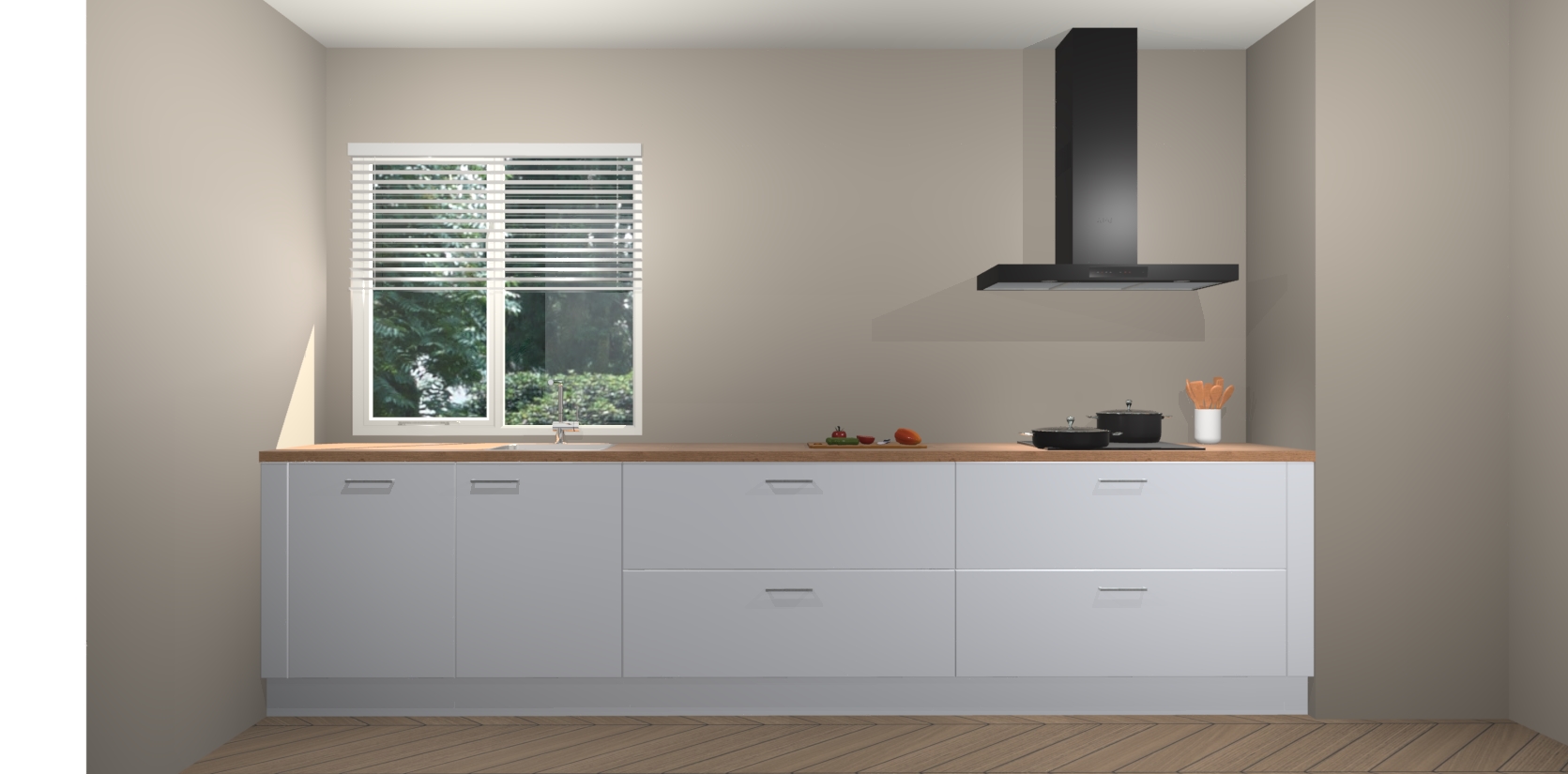 Een stijlvolle en praktische keuken als deze mag gezien worden. Dankzij de prachtige matte afwerking wordt de keuken gemakkelijk het middelpunt van uw huis - hij ziet er geweldig uit onder allerlei lichtomstandigheden, van dag tot nacht!
