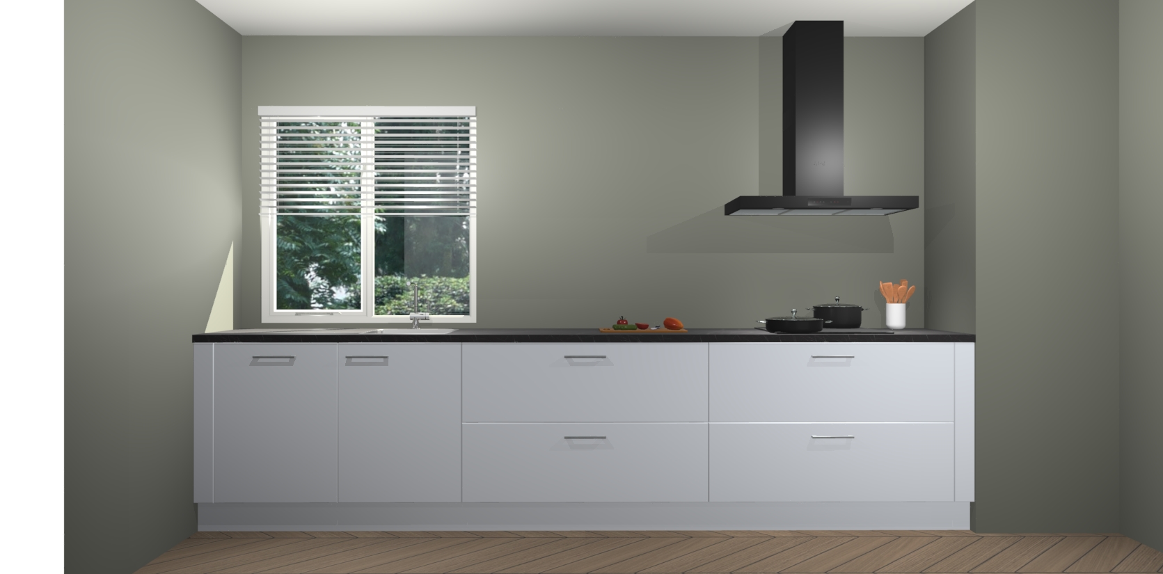 Een stijlvolle en praktische keuken als deze mag gezien worden. Dankzij de prachtige matte afwerking wordt de keuken gemakkelijk het middelpunt van uw huis - hij ziet er geweldig uit onder allerlei lichtomstandigheden, van dag tot nacht!