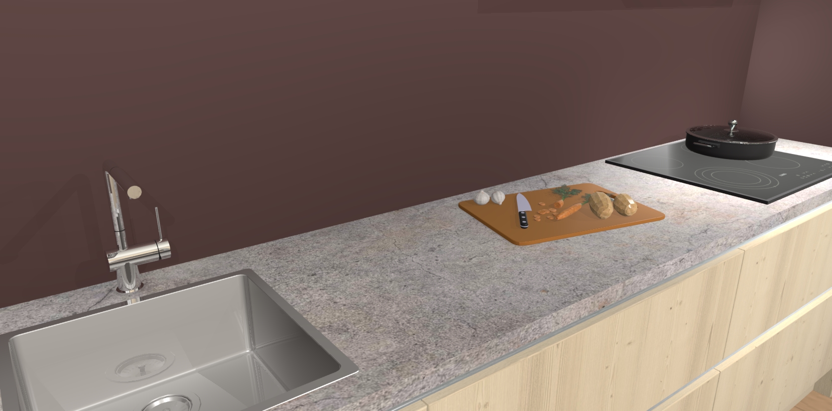 - Uitsparing van kookplaat, spoelbak en kraan dient u zelf te verzorgen.