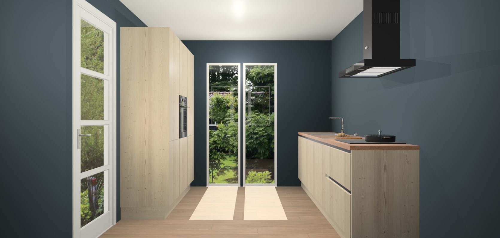 De softclose deuren openen en sluiten is ook heel eenvoudig - geniet van een moeiteloze keukenervaring, zelfs als er kinderen rondlopen. Voor extra gemak bij het plaatsen van uw bestelling bieden we ook een upgrade naar een kookplaat met geïntegreerde afzuiging.