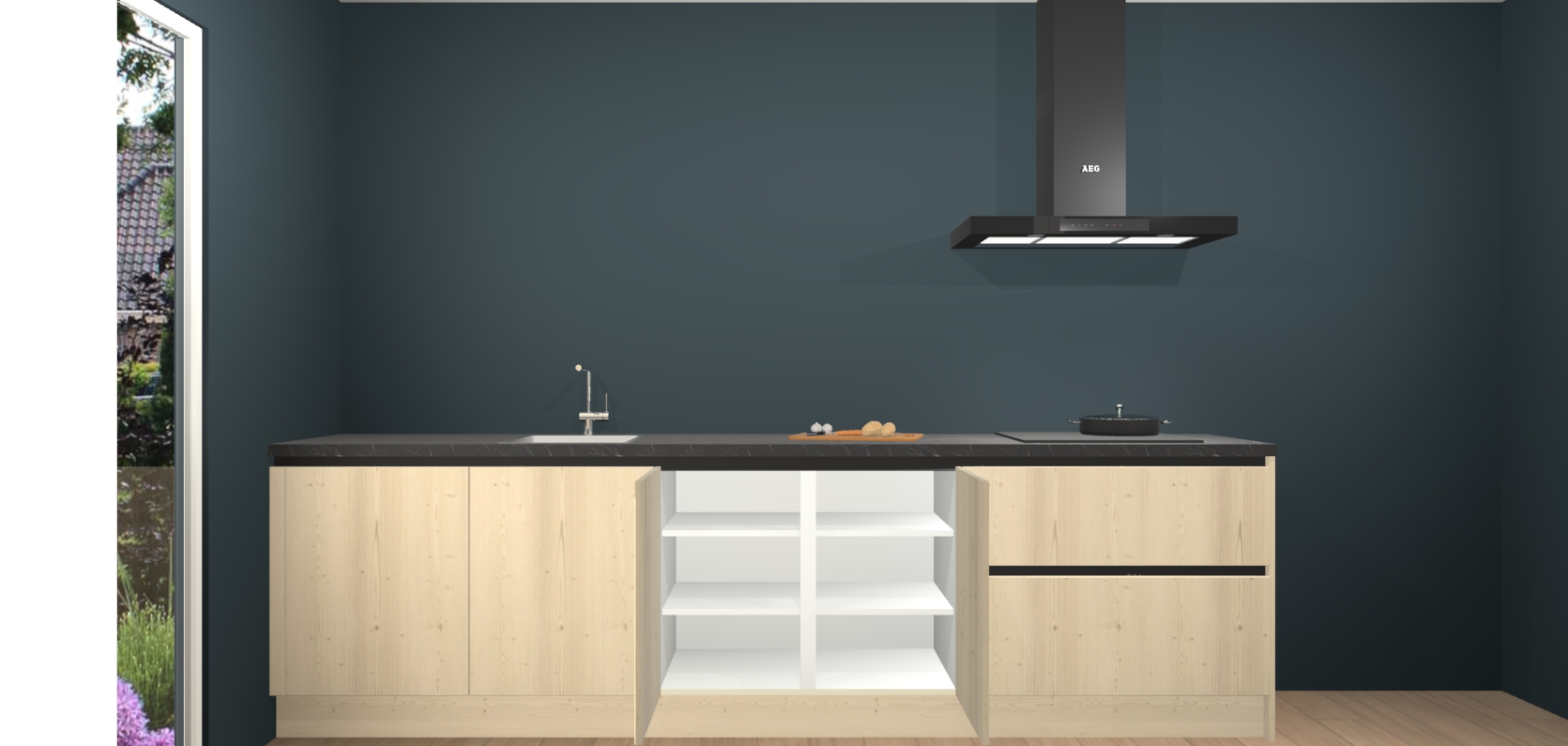 De softclose deuren openen en sluiten is ook heel eenvoudig - geniet van een moeiteloze keukenervaring, zelfs als er kinderen rondlopen. Voor extra gemak bij het plaatsen van uw bestelling bieden we ook een upgrade naar een kookplaat met geïntegreerde afzuiging.