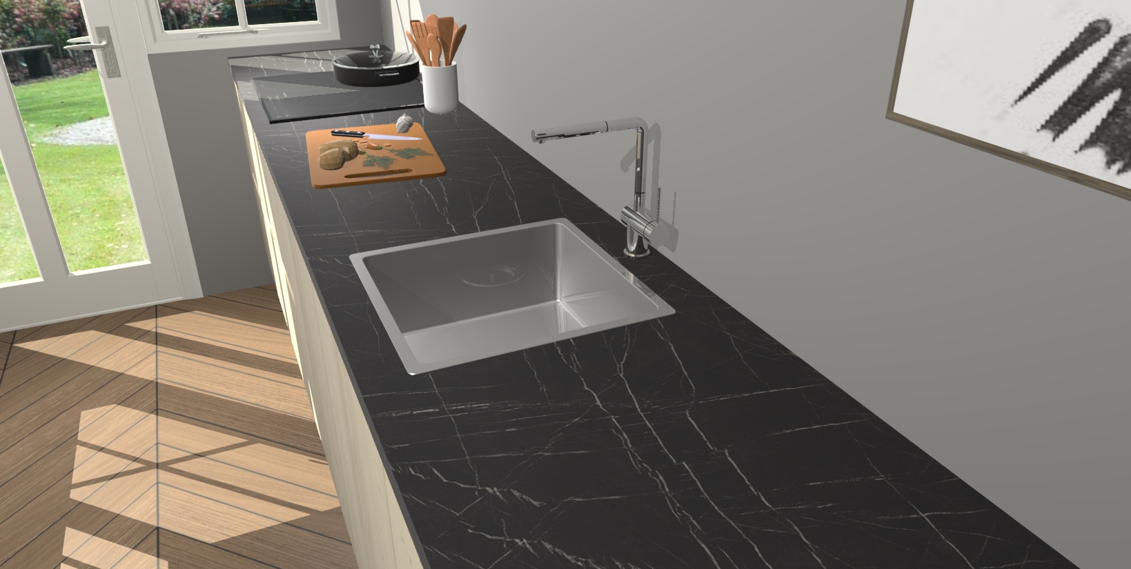- Bij een hoekwerkblad zijn de hoeken in gevreesd en op maat gemaakt