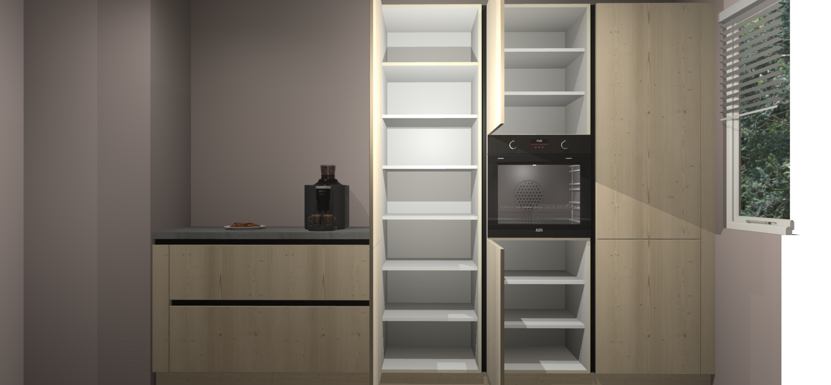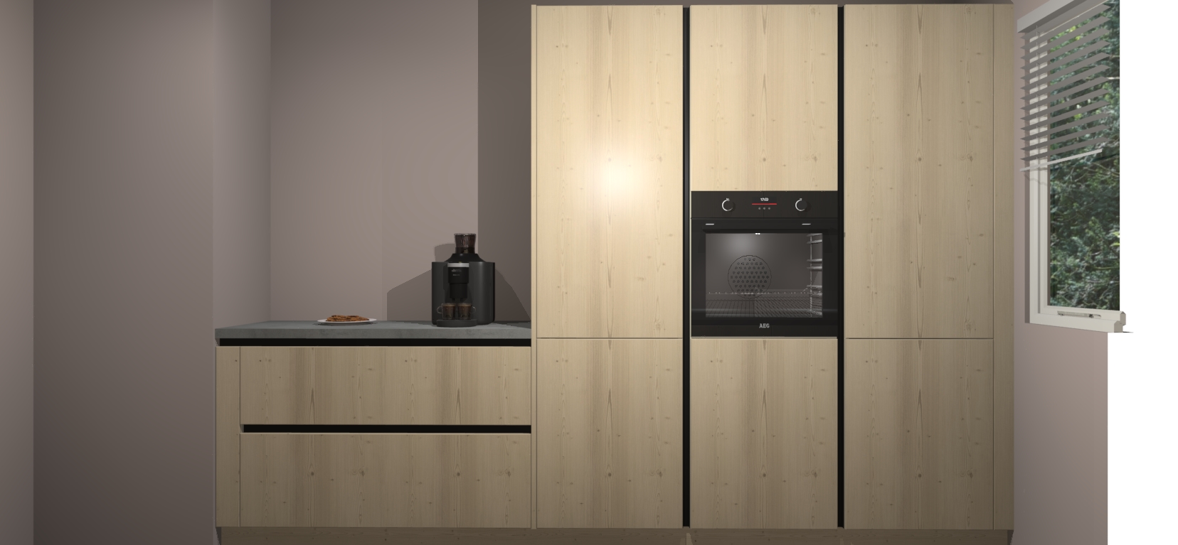 Een stijlvolle en praktische keuken als deze mag gezien worden. Dankzij de prachtige Vuren matte afwerking wordt de keuken gemakkelijk het middelpunt van uw huis - hij ziet er geweldig uit onder allerlei lichtomstandigheden, van dag tot nacht!