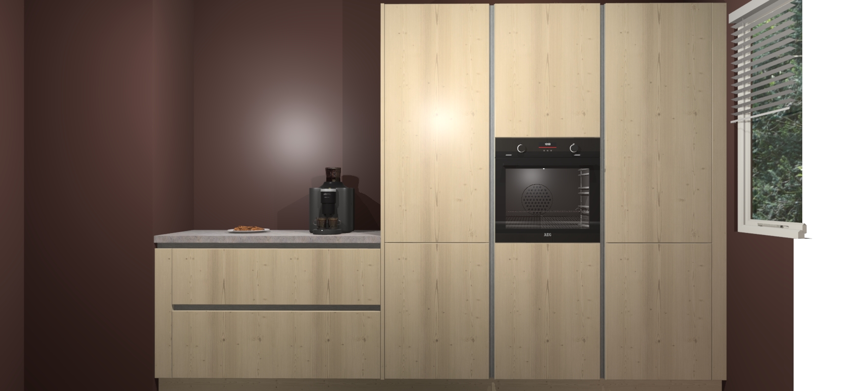Een stijlvolle en praktische keuken als deze mag gezien worden. Dankzij de prachtige Vuren matte afwerking wordt de keuken gemakkelijk het middelpunt van uw huis - hij ziet er geweldig uit onder allerlei lichtomstandigheden, van dag tot nacht!