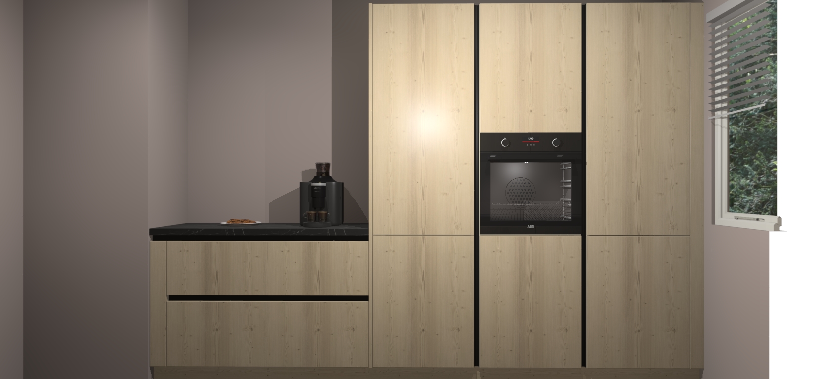 Een stijlvolle en praktische keuken als deze mag gezien worden. Dankzij de prachtige Vuren matte afwerking wordt de keuken gemakkelijk het middelpunt van uw huis - hij ziet er geweldig uit onder allerlei lichtomstandigheden, van dag tot nacht!