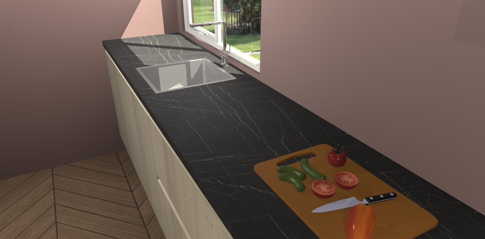 - Bij een hoekwerkblad zijn de hoeken in gevreesd en op maat gemaakt