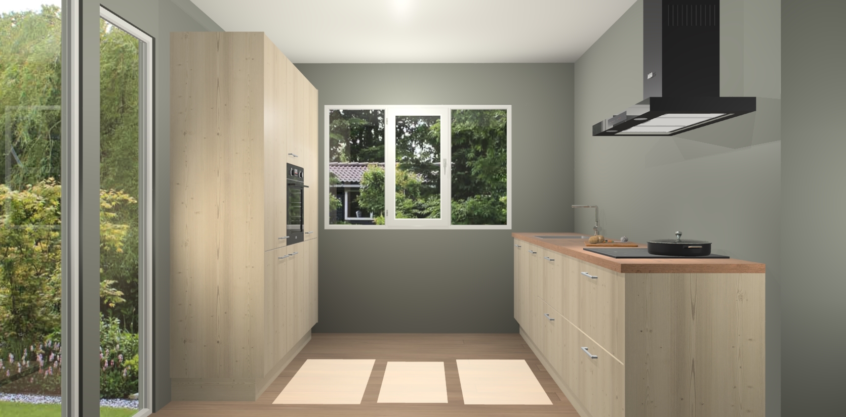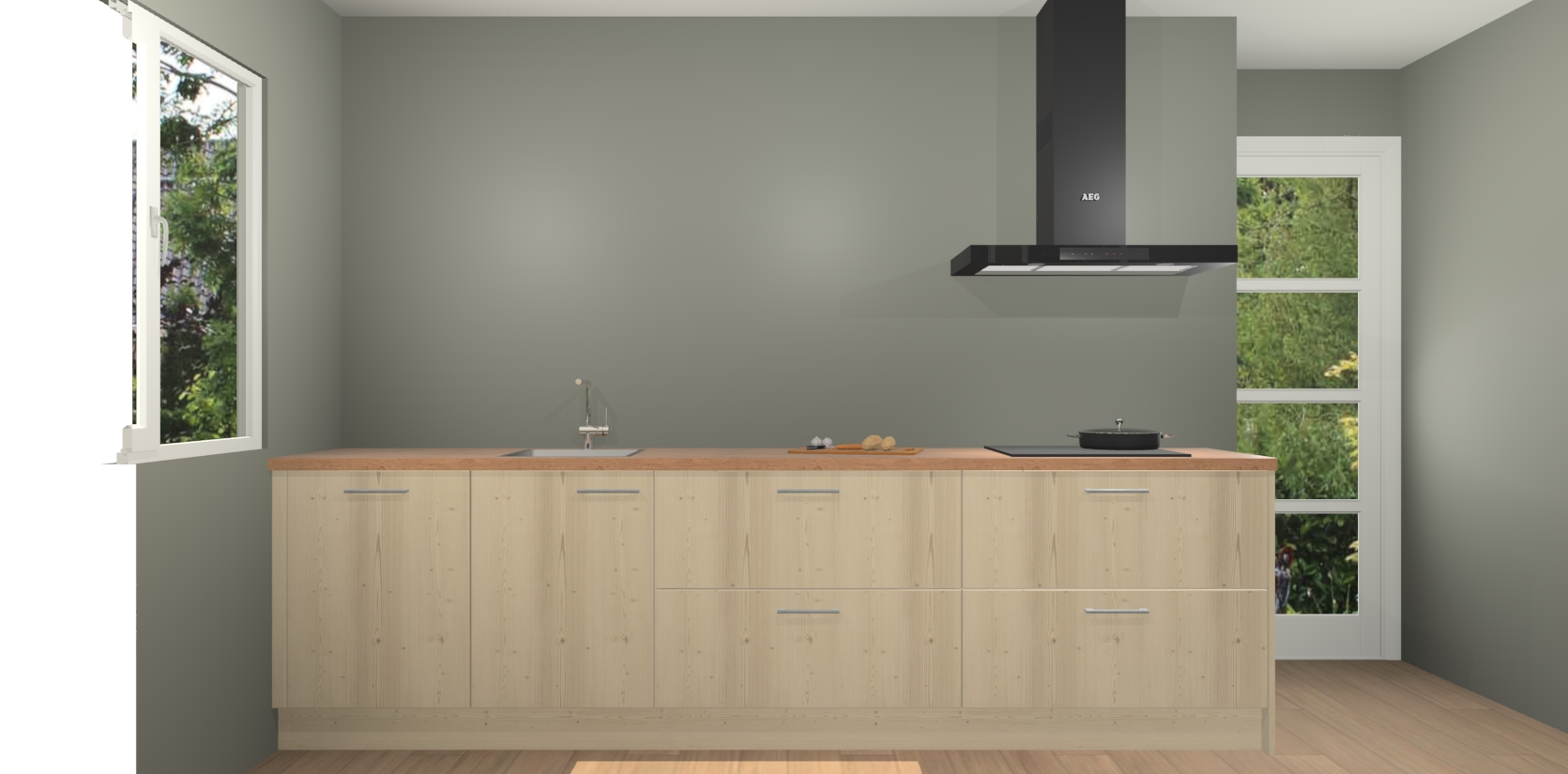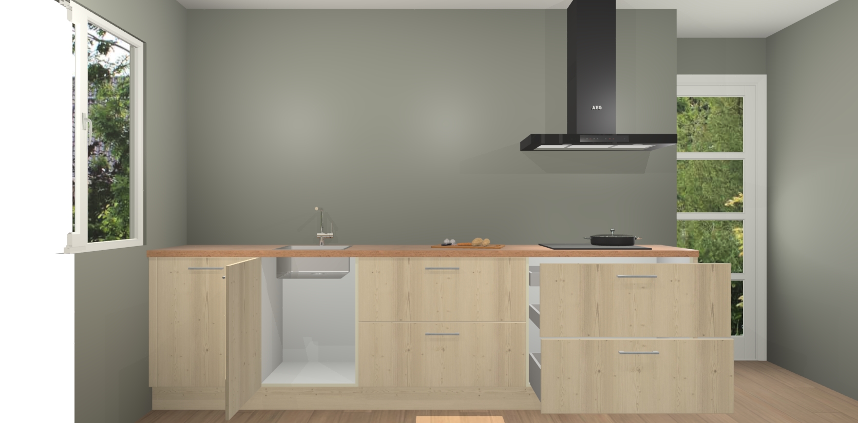 De softclose deuren openen en sluiten is ook heel eenvoudig - geniet van een moeiteloze keukenervaring, zelfs als er kinderen rondlopen. Voor extra gemak bij het plaatsen van uw bestelling bieden we ook een upgrade naar een kookplaat met geïntegreerde afzuiging.