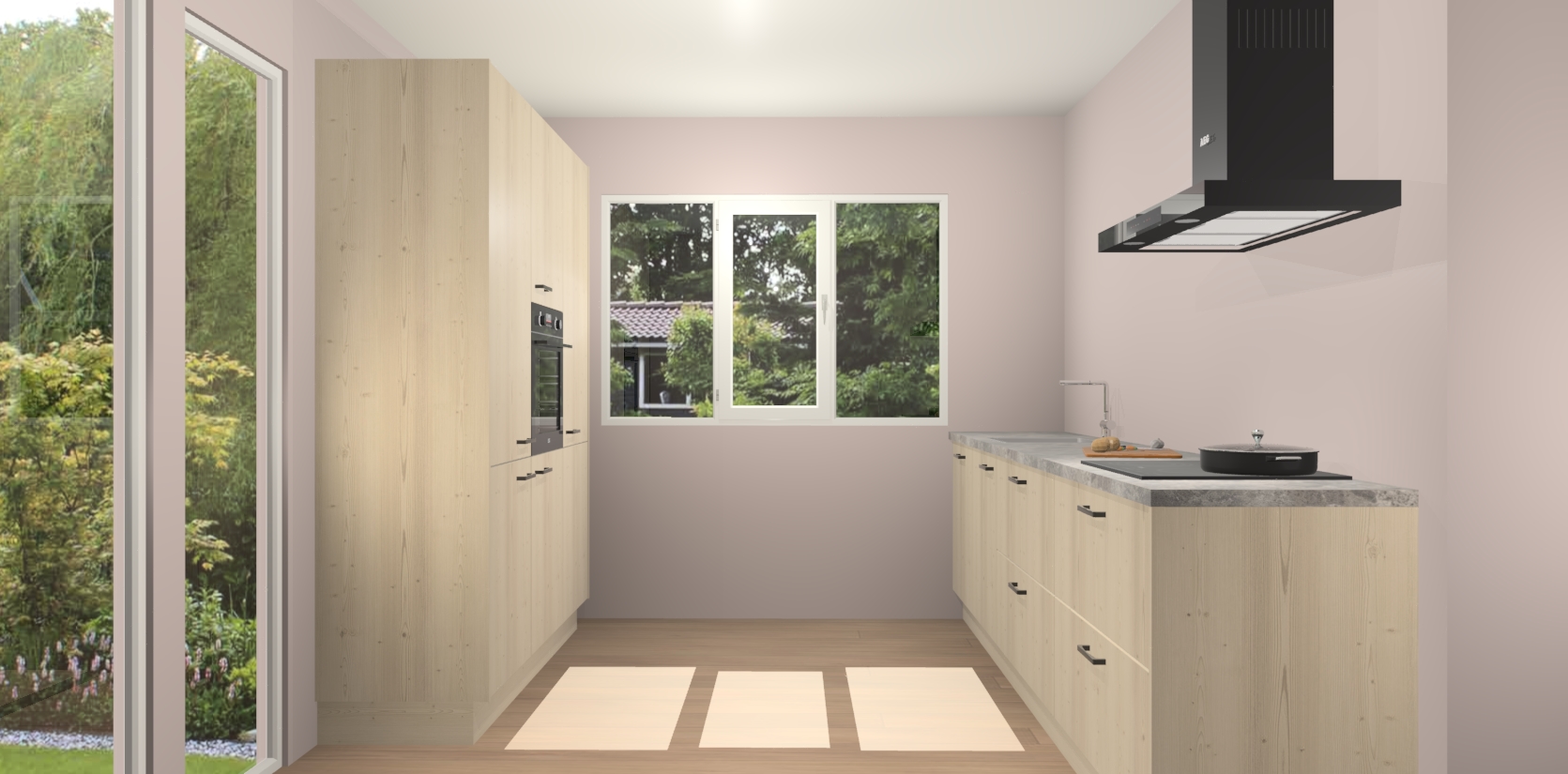 De softclose deuren openen en sluiten is ook heel eenvoudig - geniet van een moeiteloze keukenervaring, zelfs als er kinderen rondlopen. Voor extra gemak bij het plaatsen van uw bestelling bieden we ook een upgrade naar een kookplaat met geïntegreerde afzuiging.