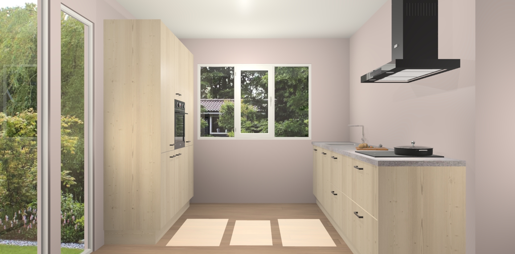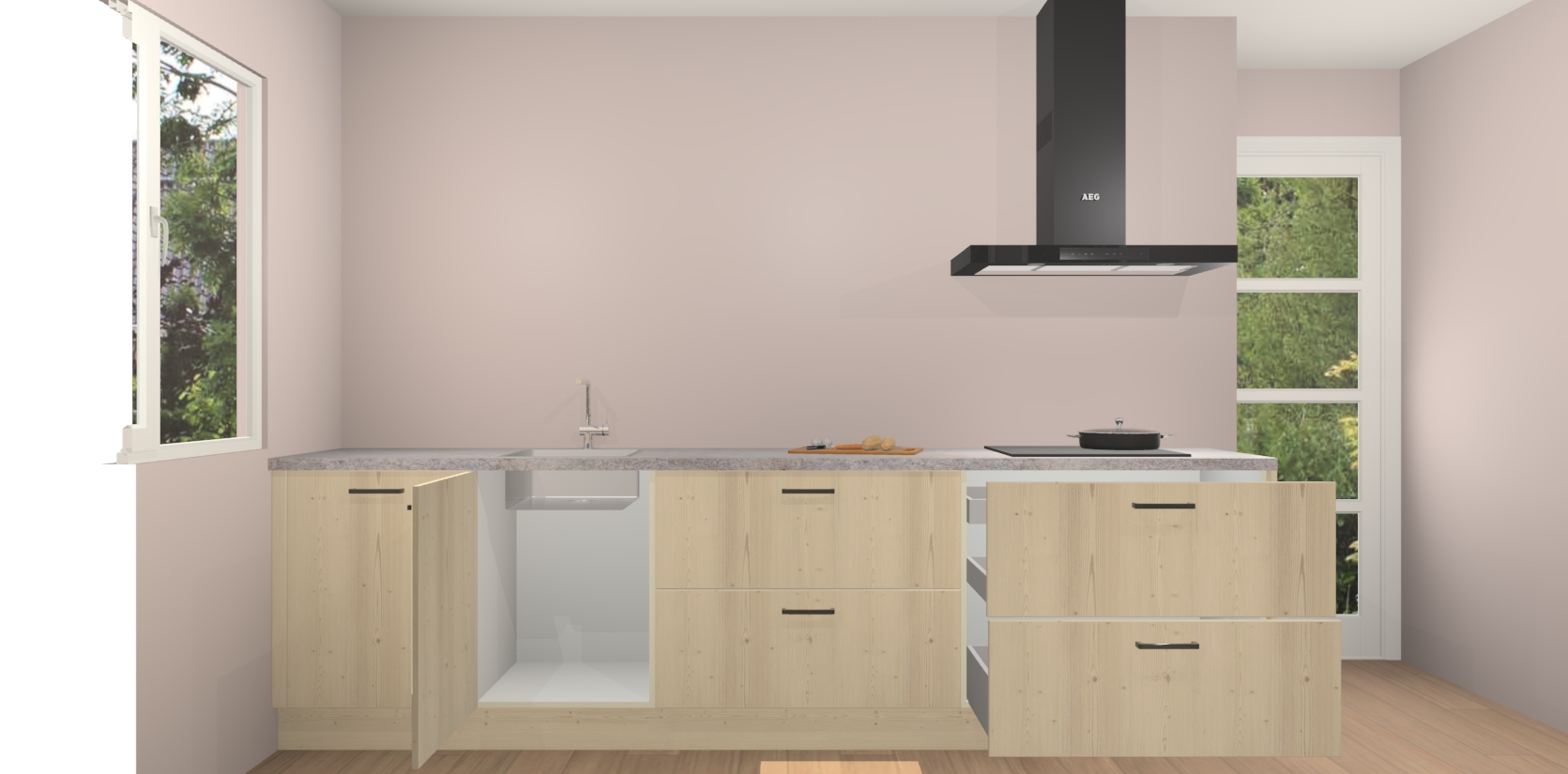 De softclose deuren openen en sluiten is ook heel eenvoudig - geniet van een moeiteloze keukenervaring, zelfs als er kinderen rondlopen. Voor extra gemak bij het plaatsen van uw bestelling bieden we ook een upgrade naar een kookplaat met geïntegreerde afzuiging.
