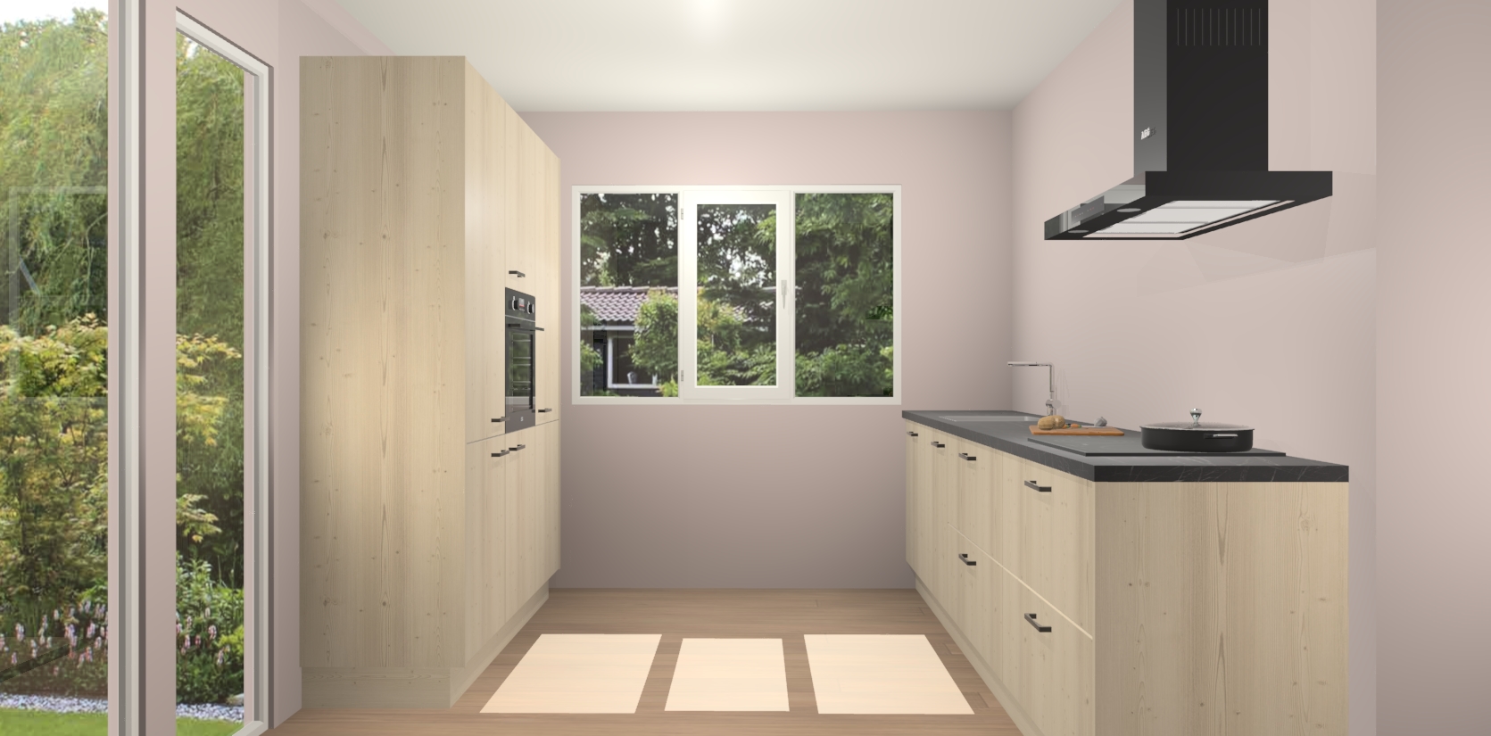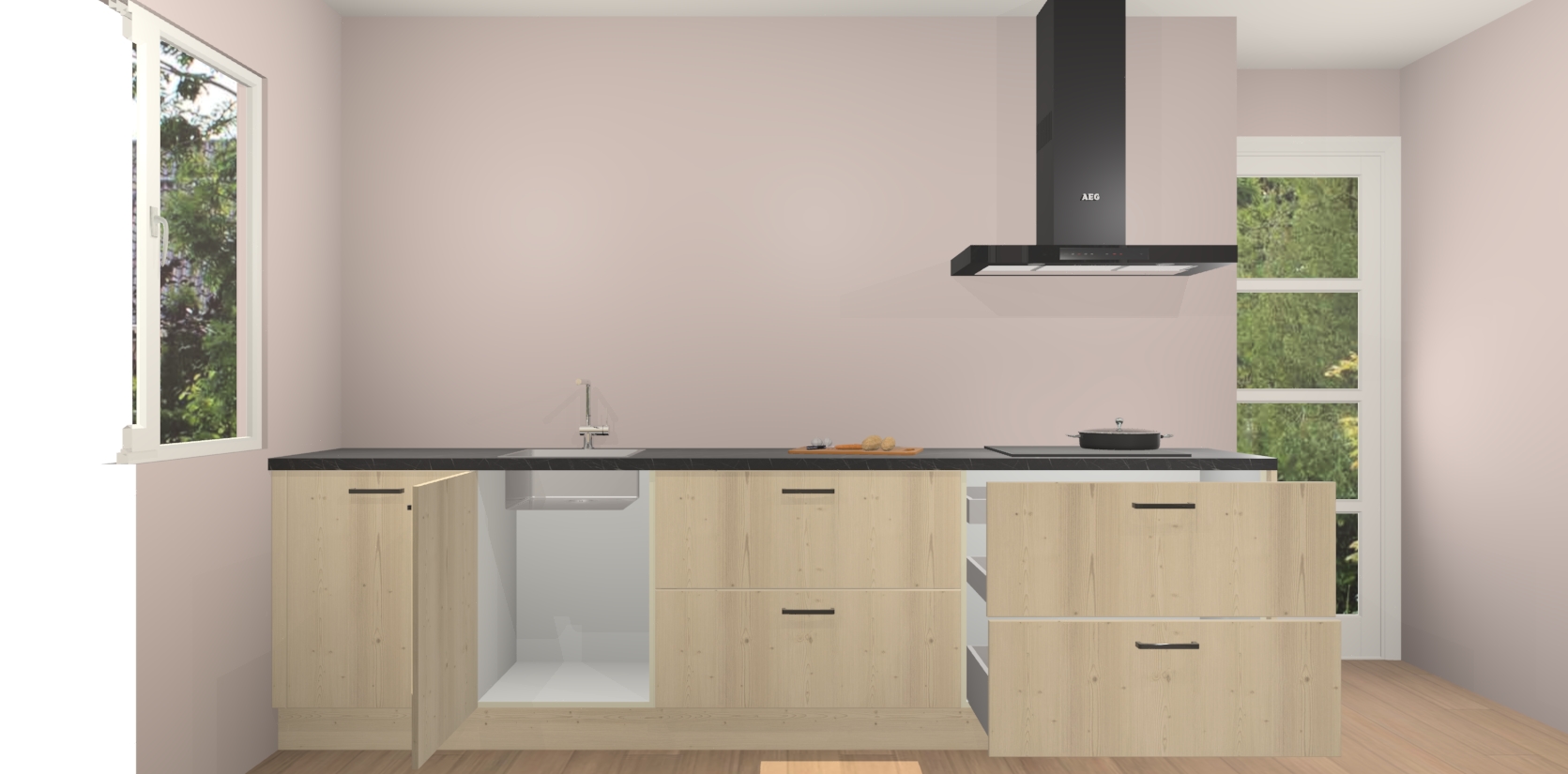 De softclose deuren openen en sluiten is ook heel eenvoudig - geniet van een moeiteloze keukenervaring, zelfs als er kinderen rondlopen. Voor extra gemak bij het plaatsen van uw bestelling bieden we ook een upgrade naar een kookplaat met geïntegreerde afzuiging.