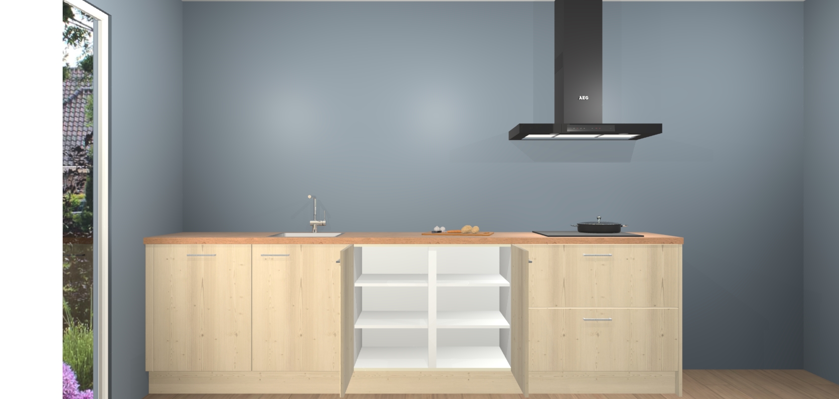 De softclose deuren openen en sluiten is ook heel eenvoudig - geniet van een moeiteloze keukenervaring, zelfs als er kinderen rondlopen. Voor extra gemak bij het plaatsen van uw bestelling bieden we ook een upgrade naar een kookplaat met geïntegreerde afzuiging.