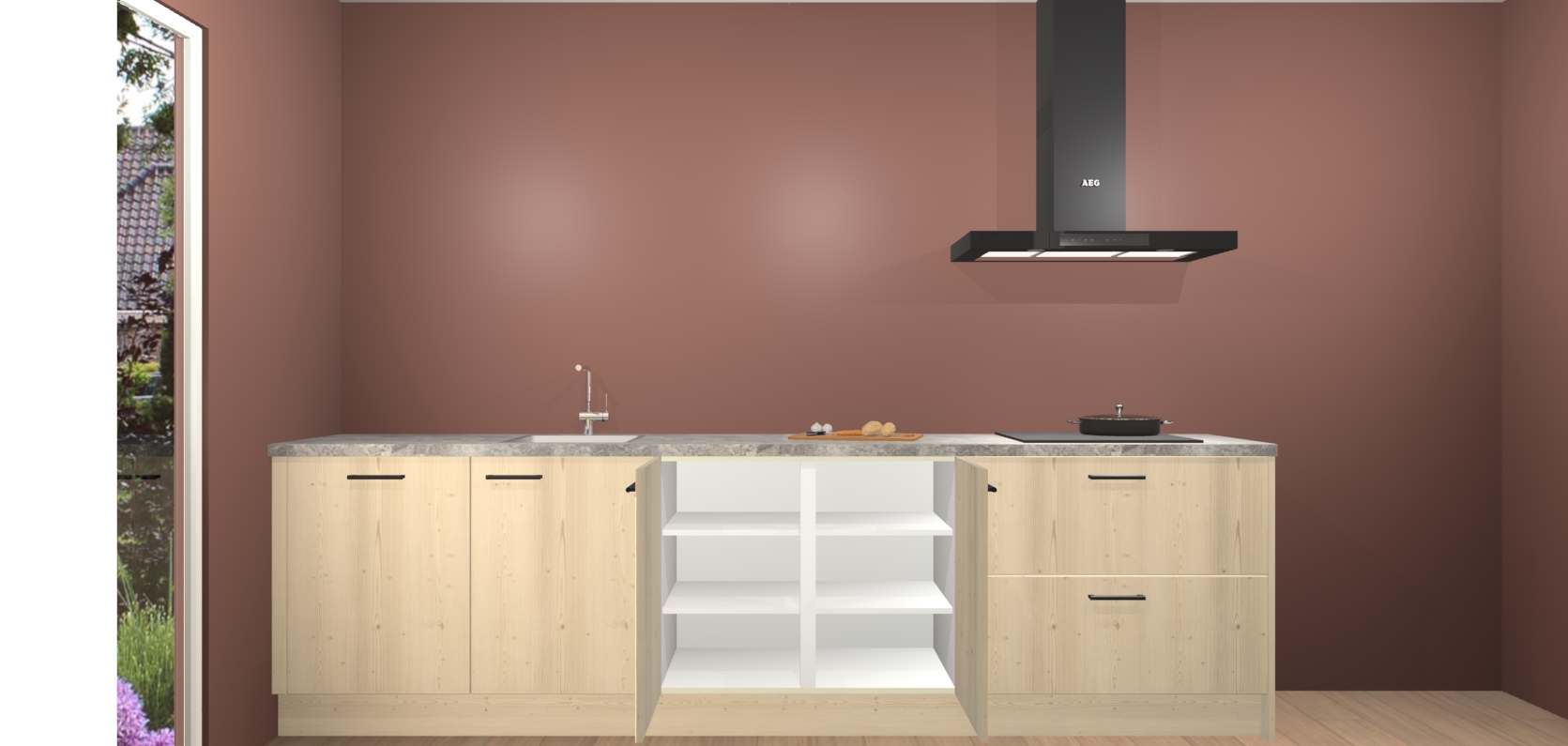 De softclose deuren openen en sluiten is ook heel eenvoudig - geniet van een moeiteloze keukenervaring, zelfs als er kinderen rondlopen. Voor extra gemak bij het plaatsen van uw bestelling bieden we ook een upgrade naar een kookplaat met geïntegreerde afzuiging.