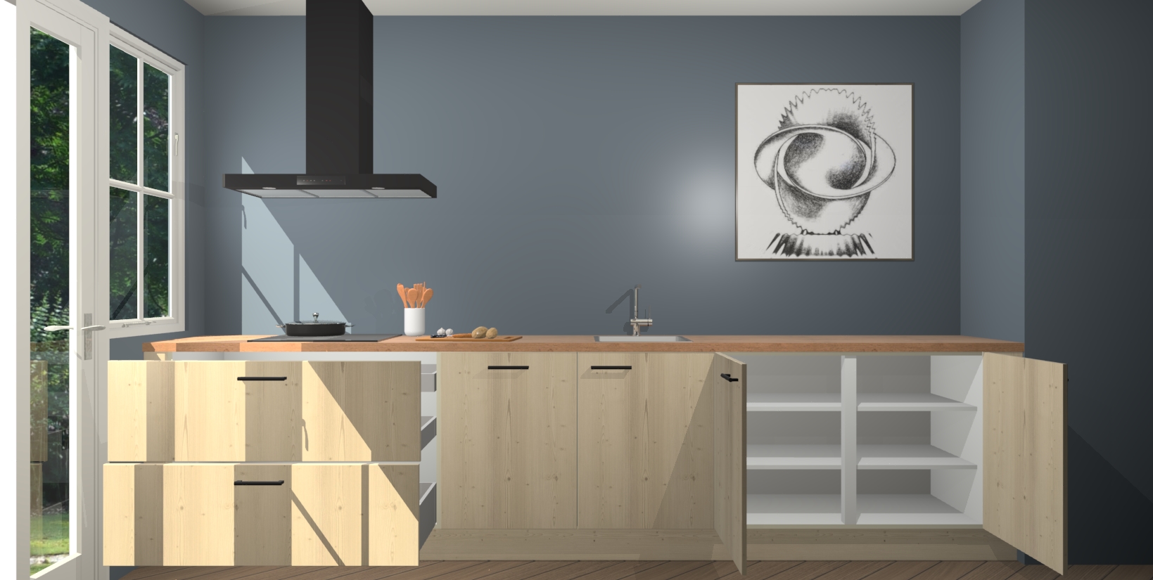 Inclusief plinten, stelpoten en werkblad